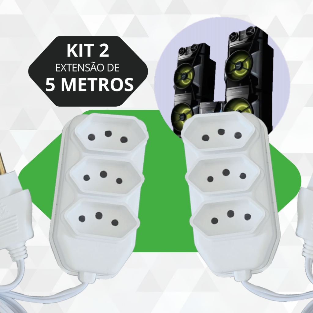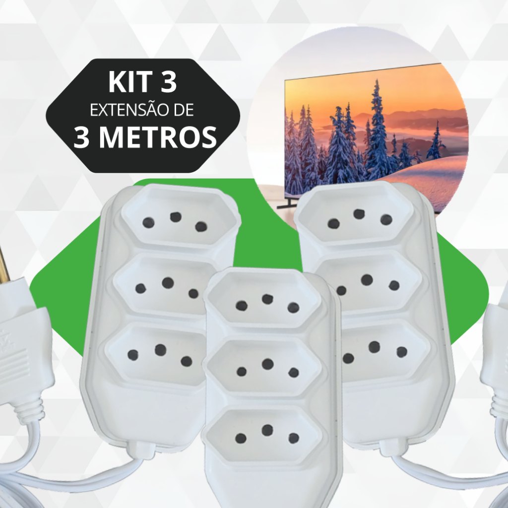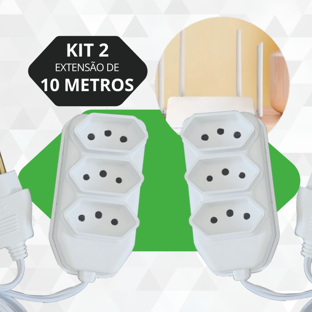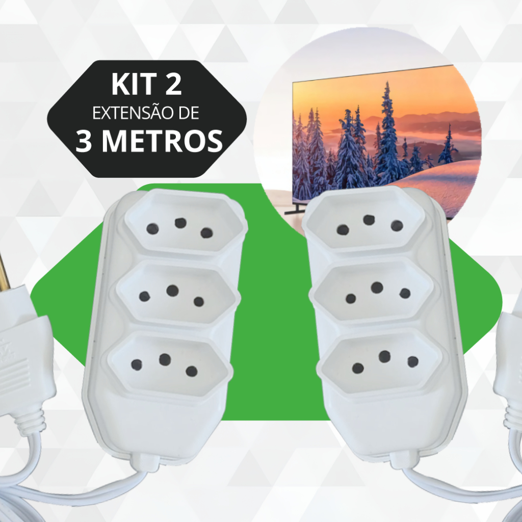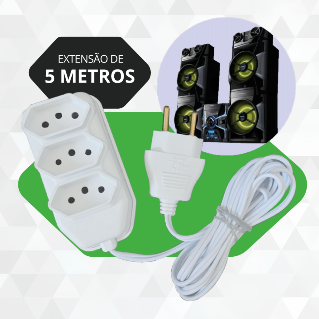 Extensão Elétrica 2, 3, 5, 10 Metros Branca e Preto Extensão Tomadas Compacta
