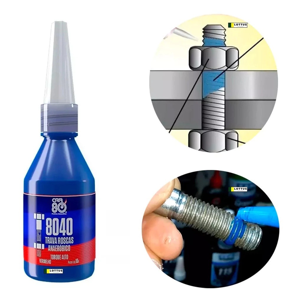 Trava Química Torque Alto Vermelho 10g Vedador Anaerobico trava e veda Parafusos e Prisioneiros