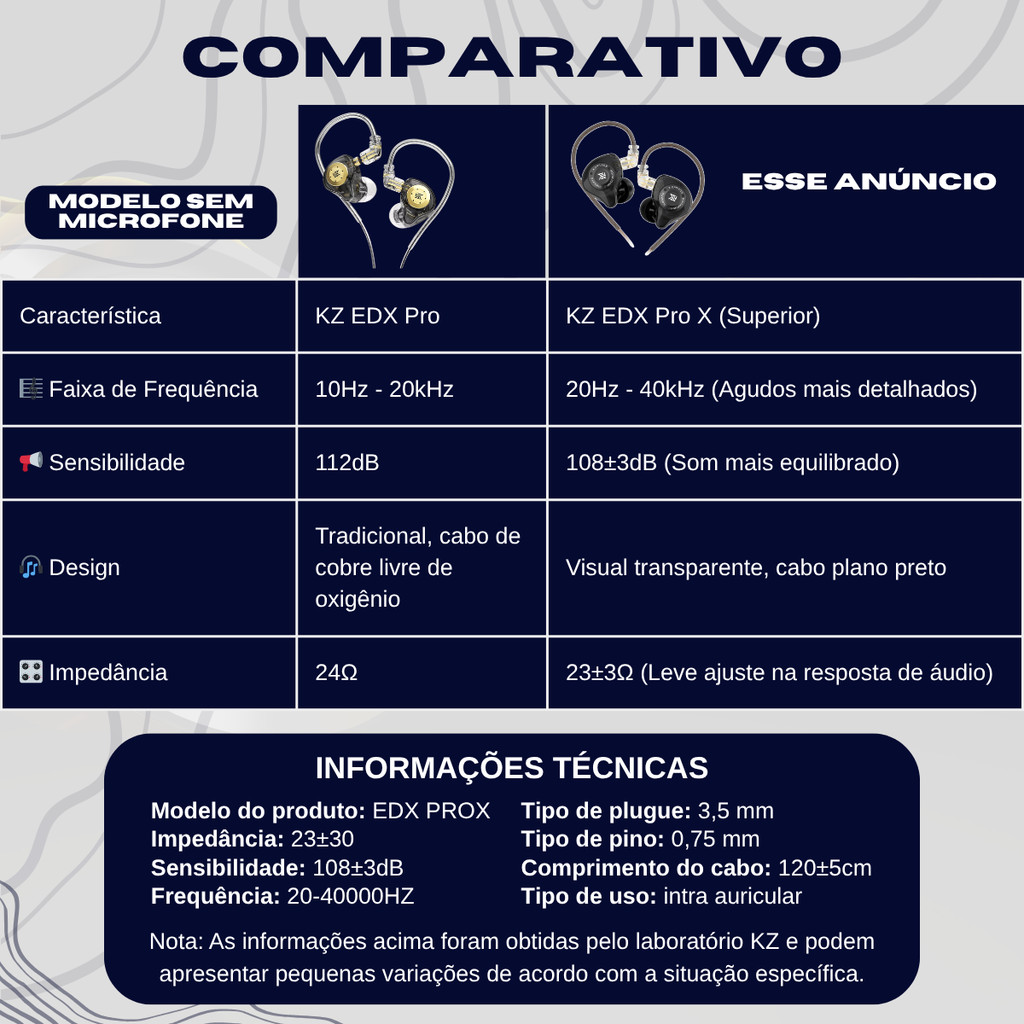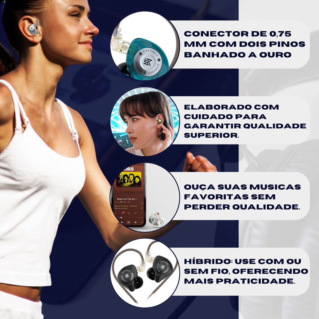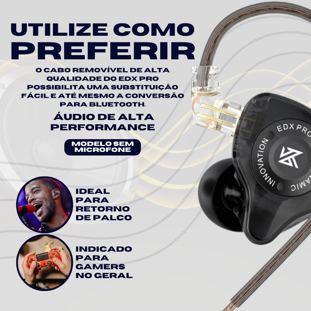 Fone De Ouvido KZ EDX PRO X Profissional Intra-auricular, Driver Dinâmico Magnético de 10mm, Original