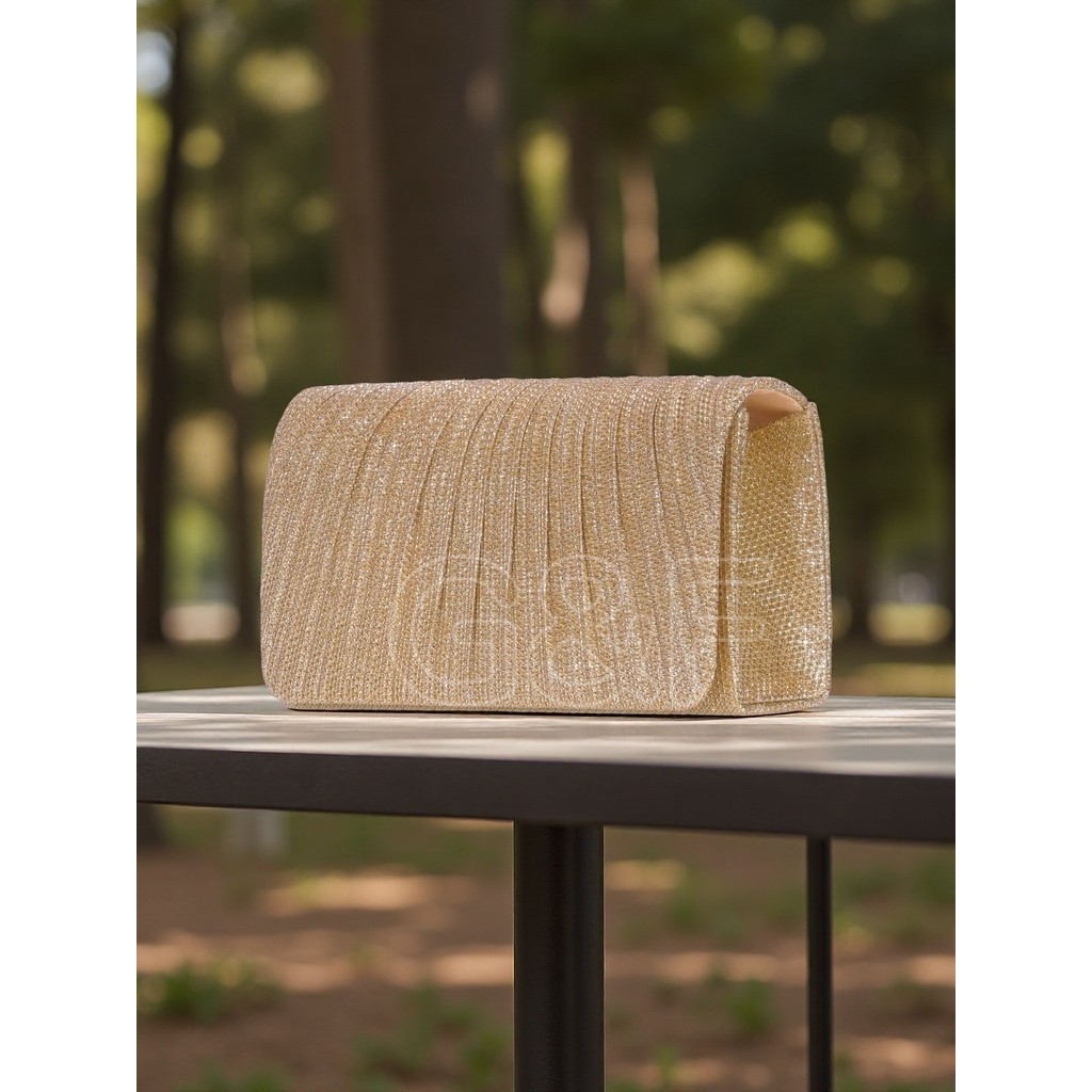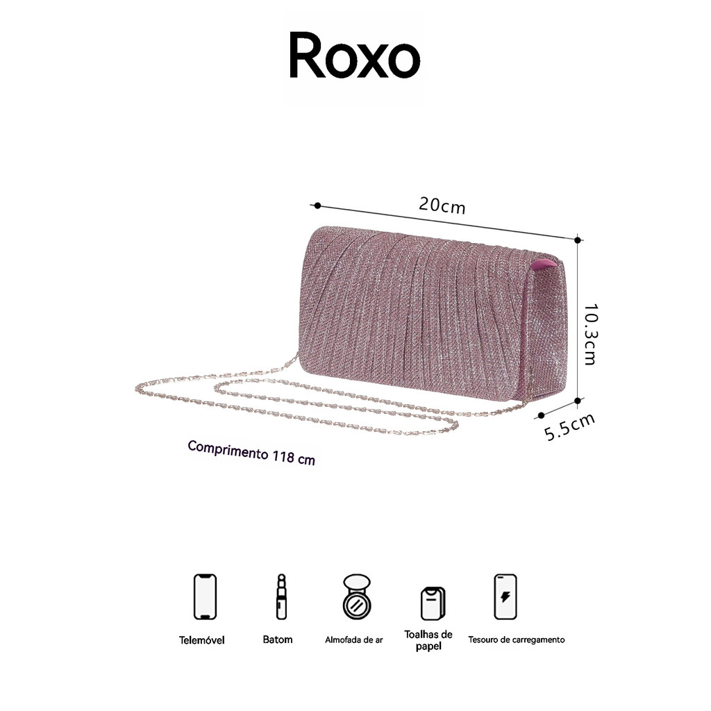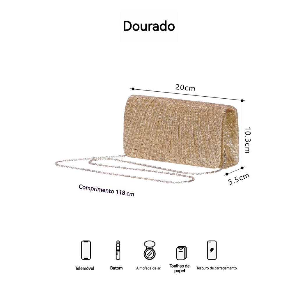 Bolsas Bolsa clutch festa listrada enrugada ondulada glitter carteiro caixinha transversal alça corrente cadeia