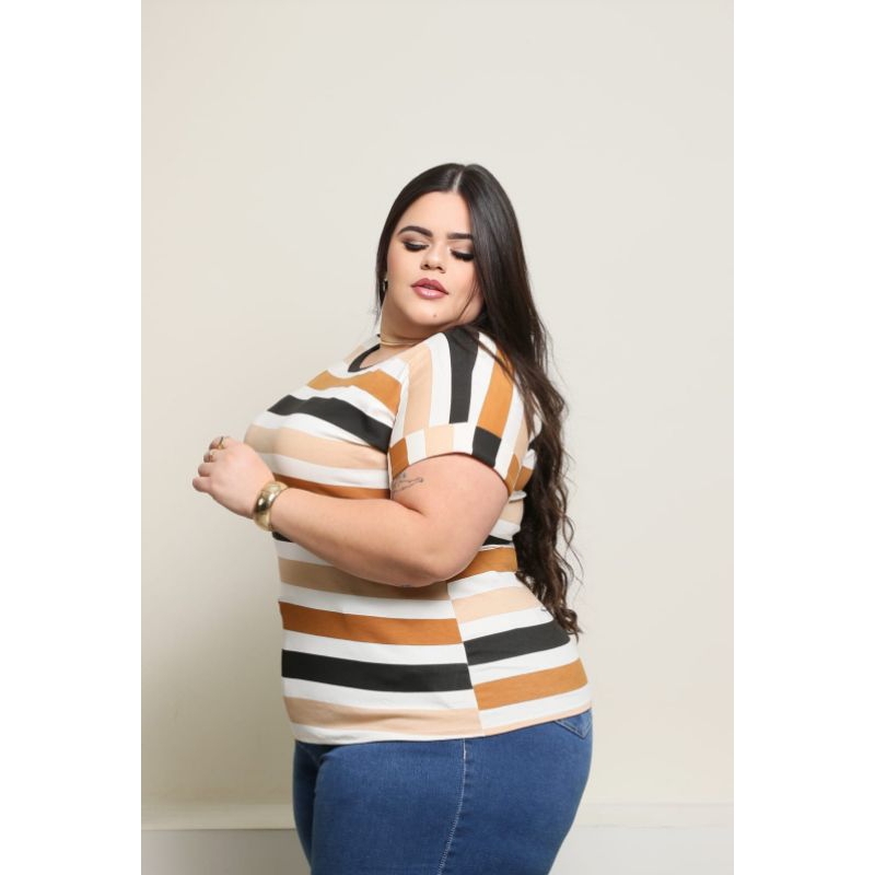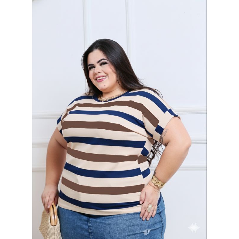 Blusa feminina plus size Manga dobrada casual viscolycra G1,G2,G3