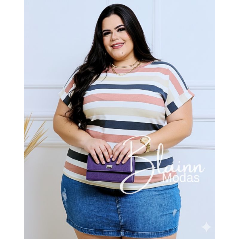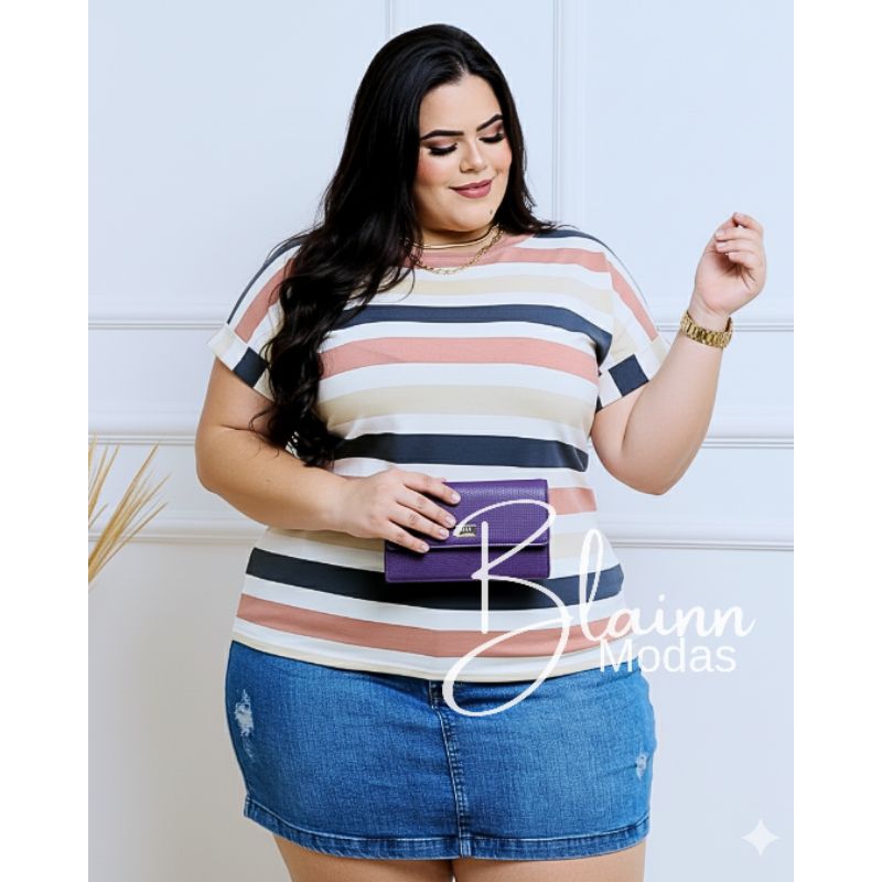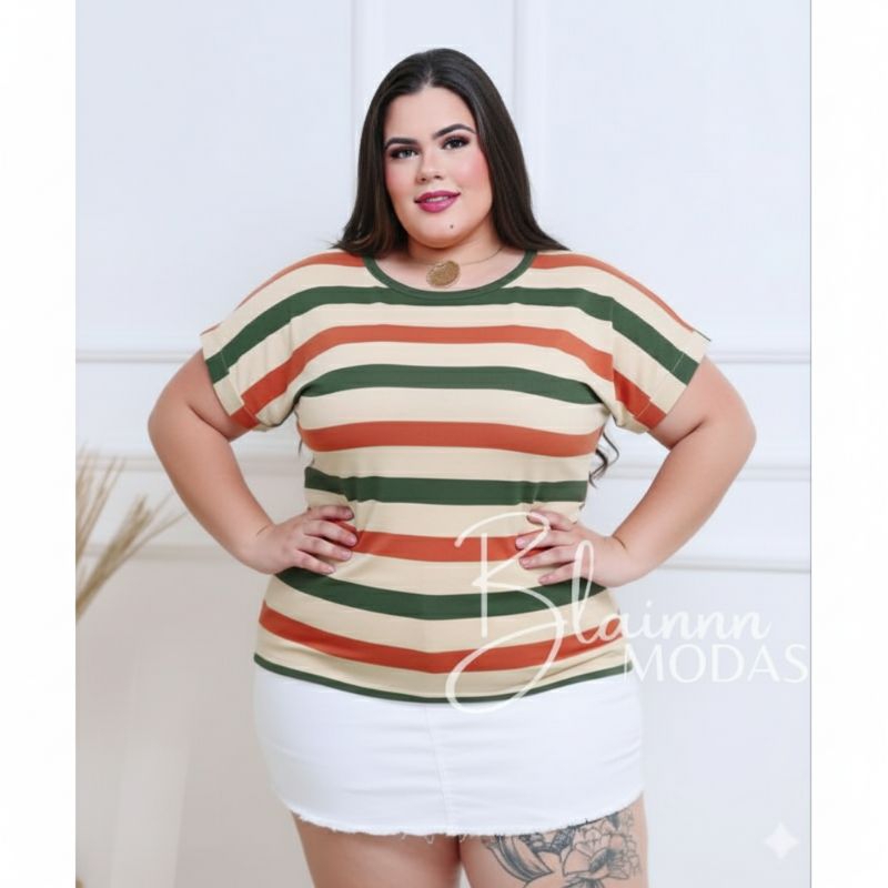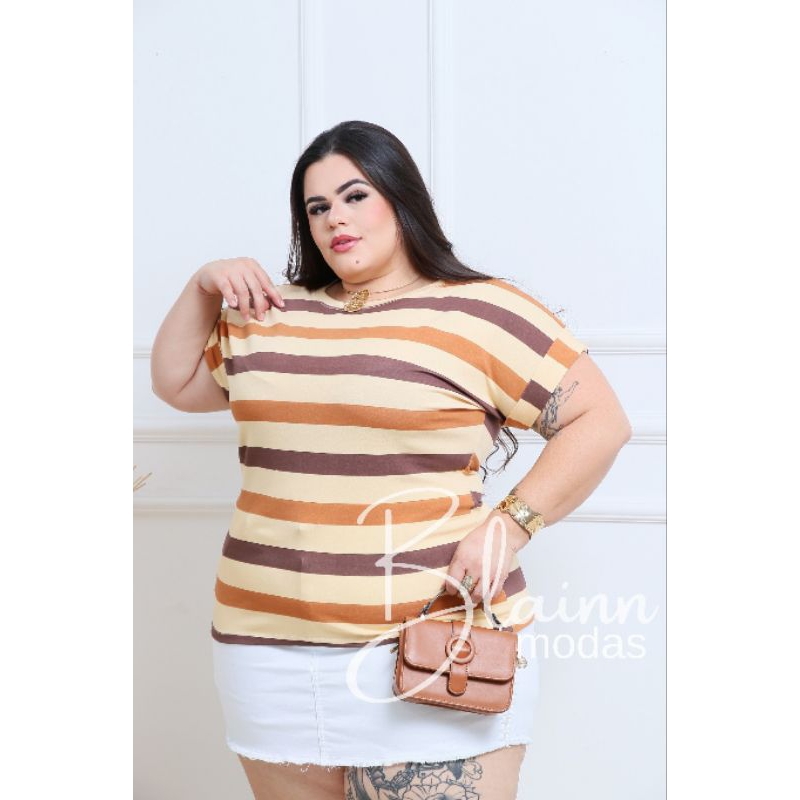 Blusa femenina plus size, manga dobrada casual viscolycra, GG, G1, G2, G3