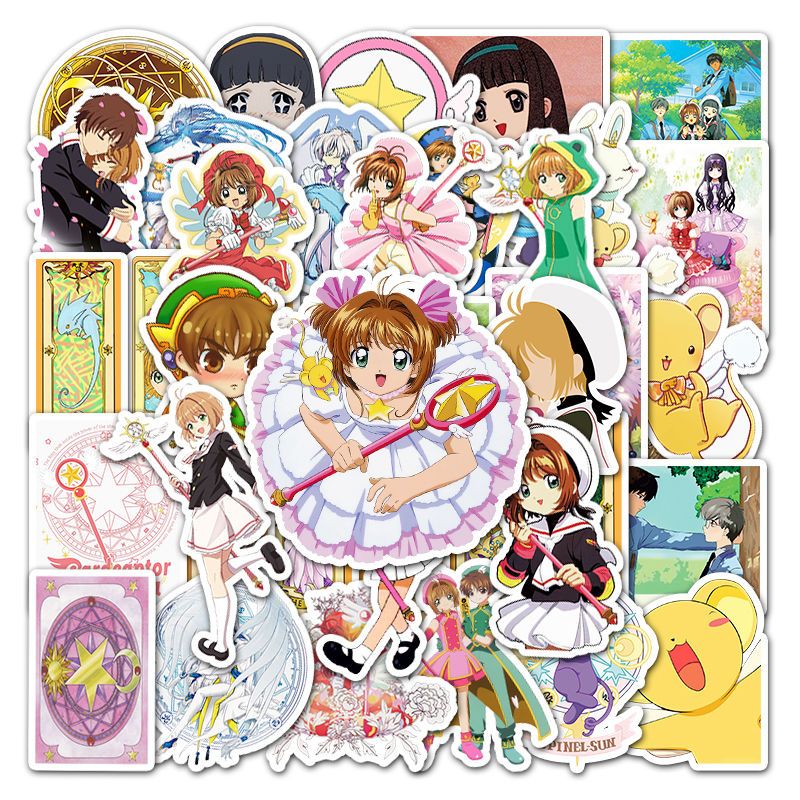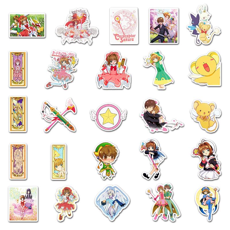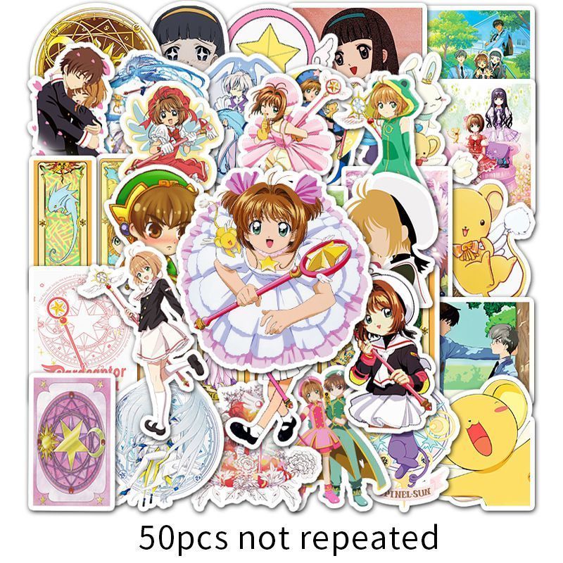 50Pcs Captor De Cartão Fofo Sakura Autocolantes Para Telefones De Bricolage Capacete De Grafite Decoração À Prova D'água