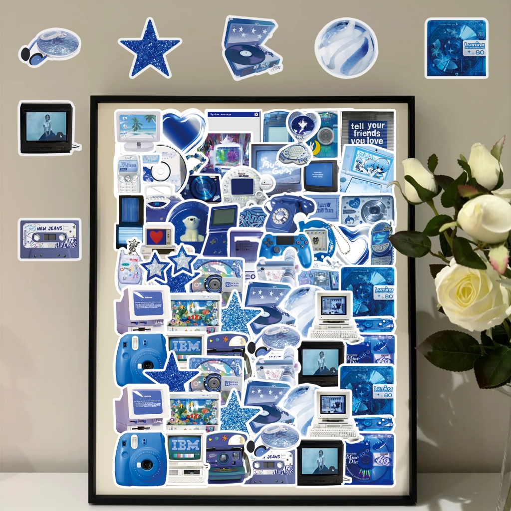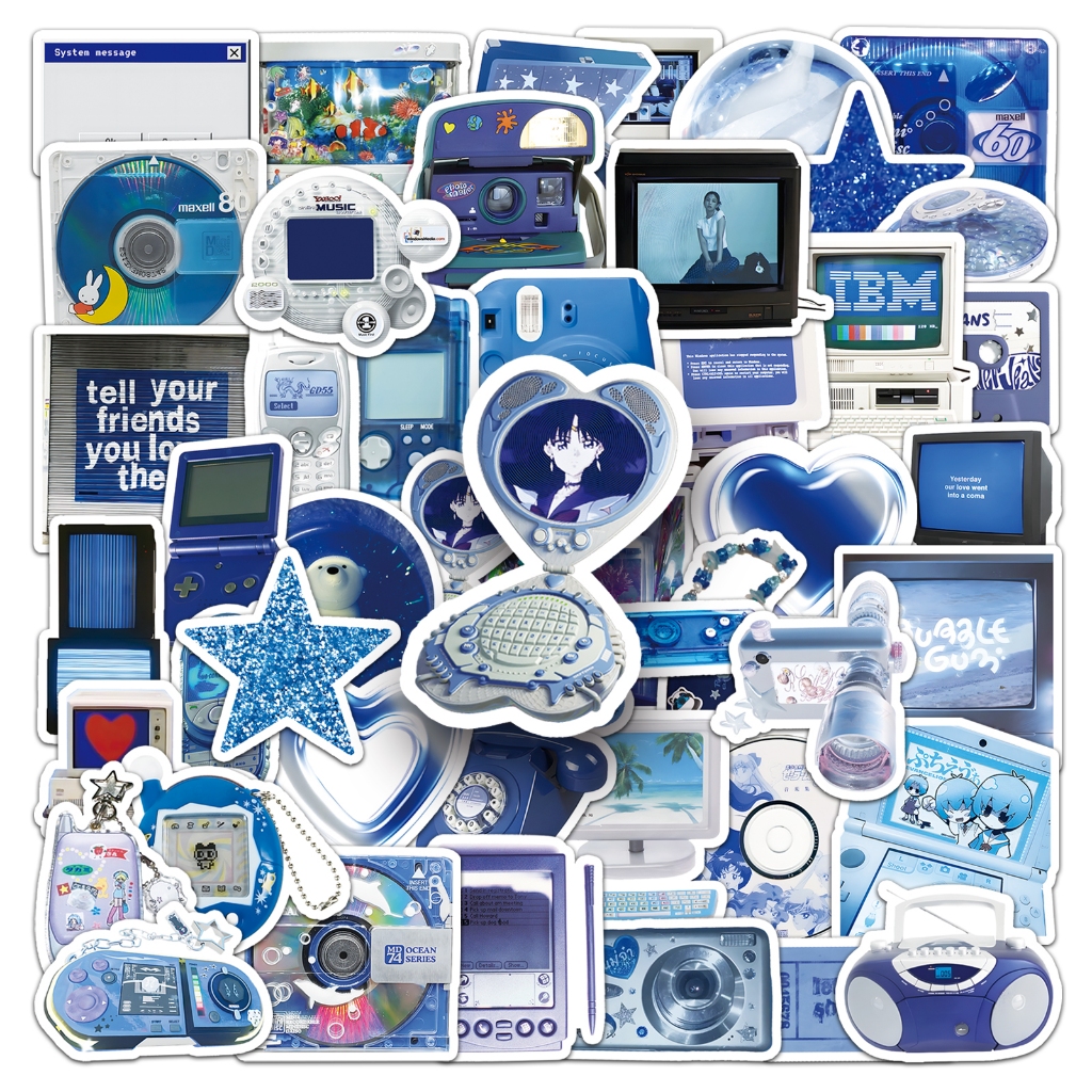 50 Peças Bonito Estilo Y2K Azul Adesivos Para Caso De Telefone Tumbler De Carro Graffiti À Prova Dwaterproof Água Criati