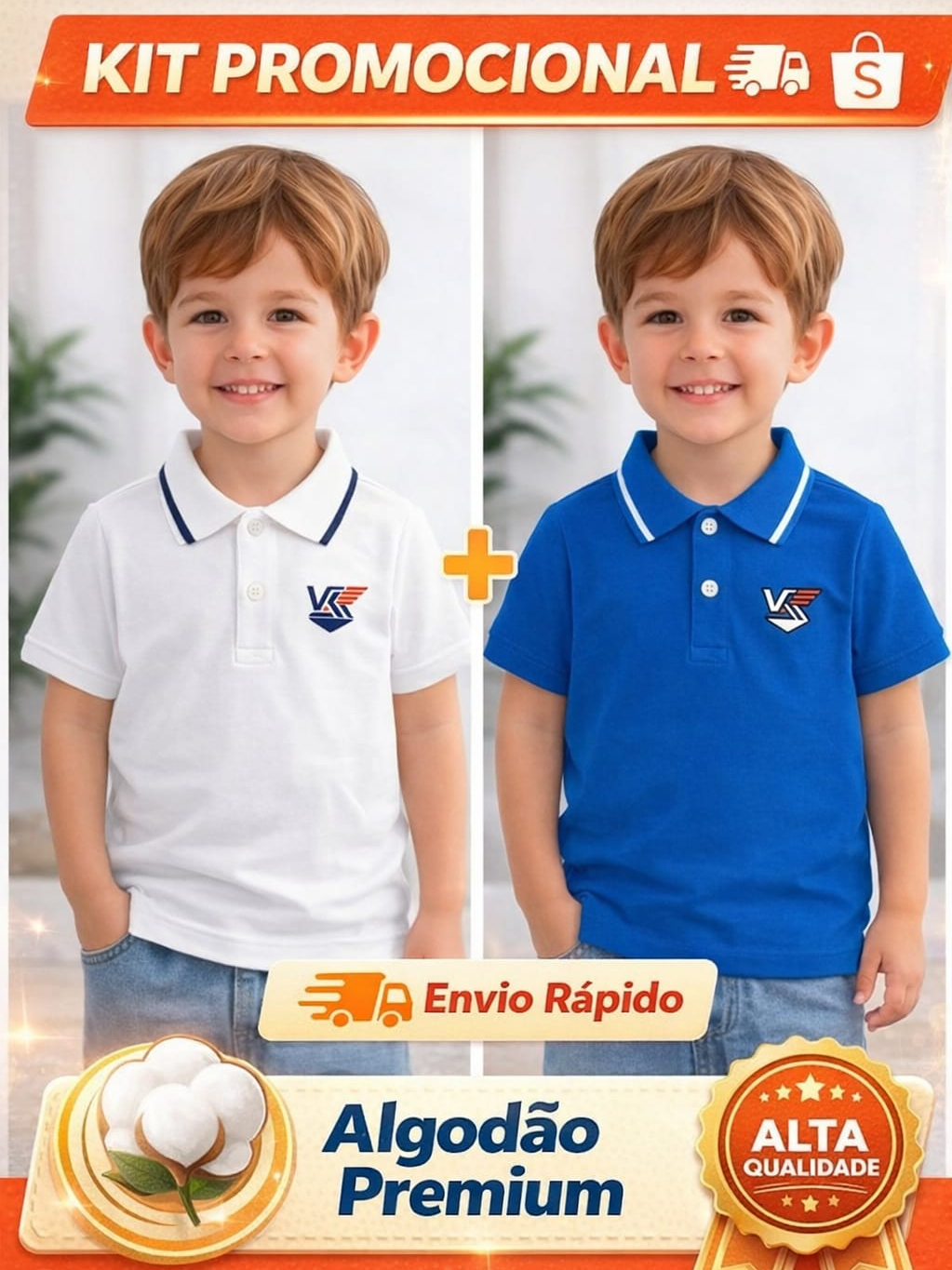 Kit 2 Camiseta Gola Polo de Menino 100% Algodão Colorida Infanto Juvenil Criança e Unidade Camisa