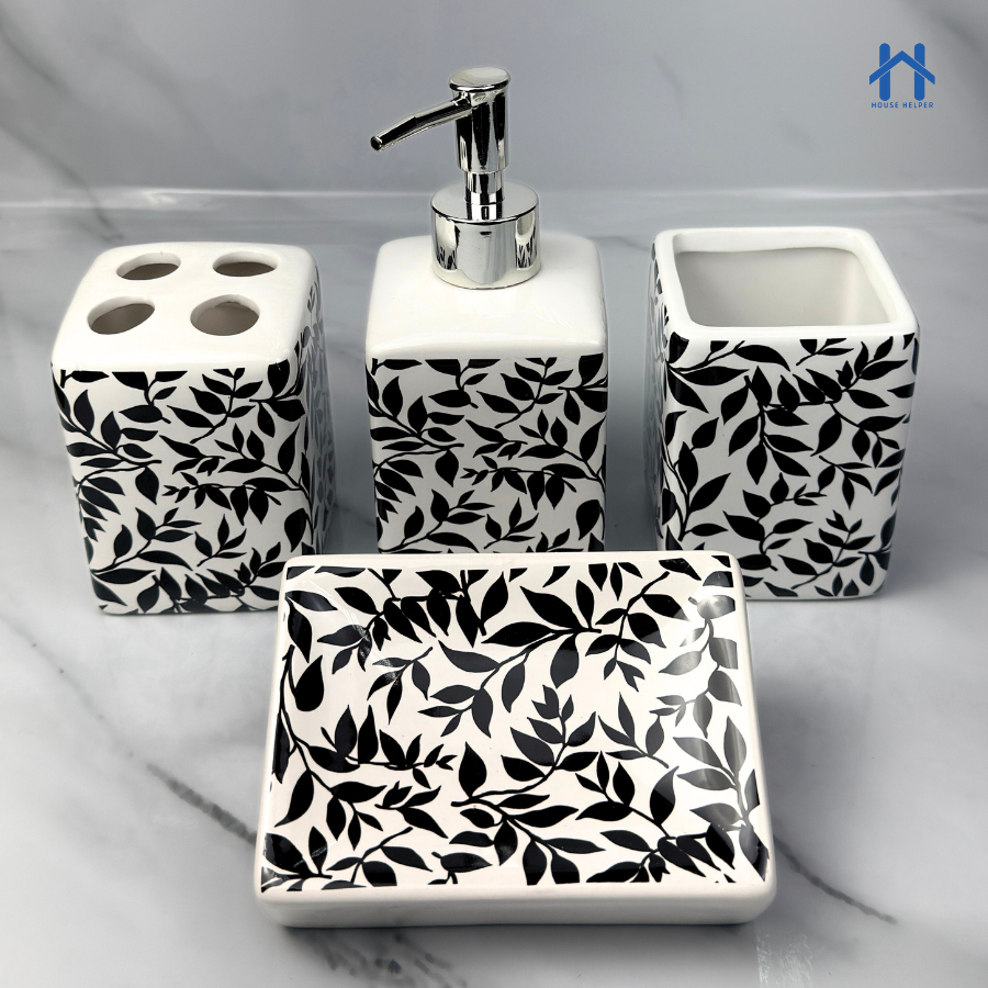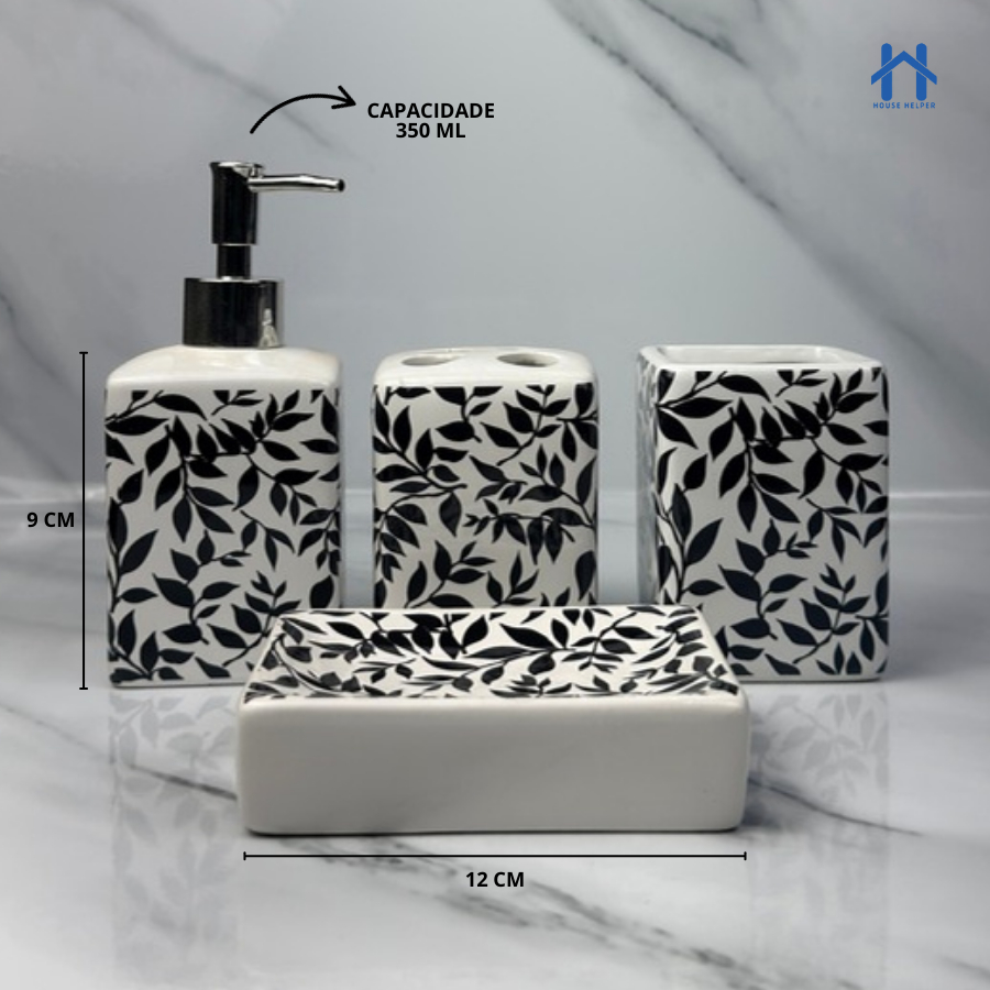 Kit de Banheiro Cerâmica 4 Peças Porta Sabonete Líquido /Saboneteira/Porta Escova/Porta algodão 304