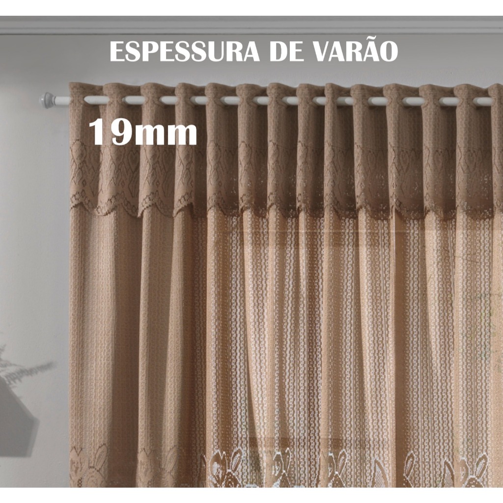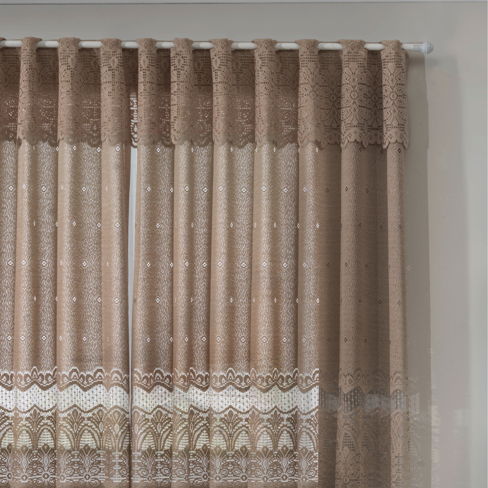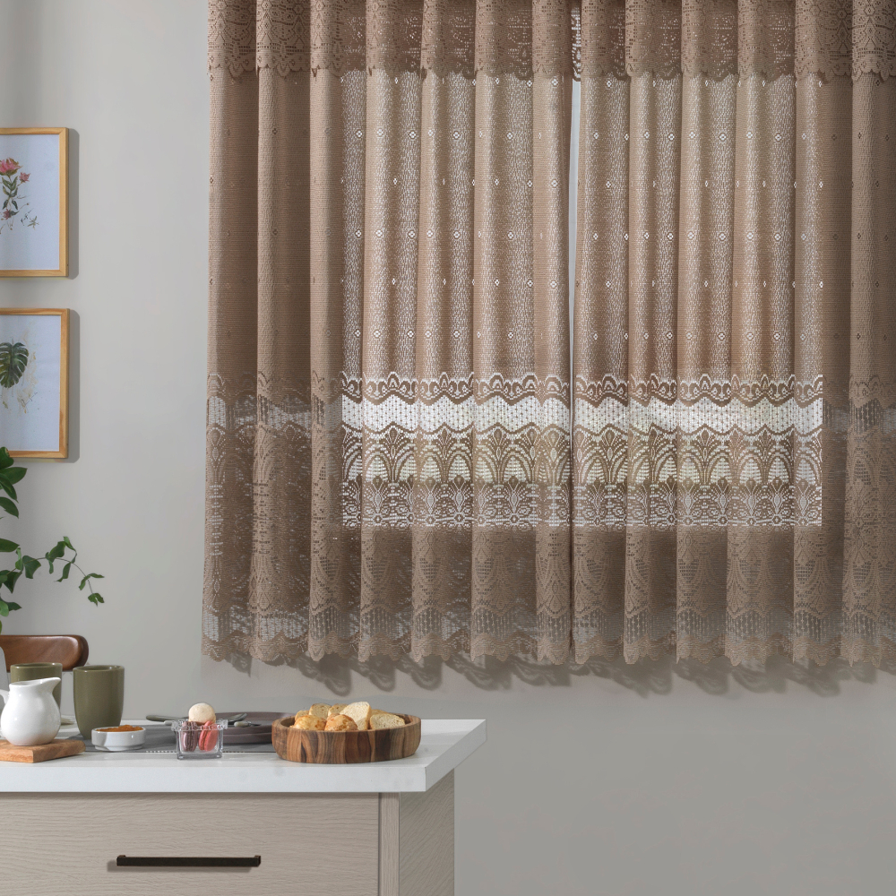 Cortina Renda Cozinha Arabesco Geométrica Lisa 2,20m x 1,20m Marrom Clássica Elegante Casa Decorada
