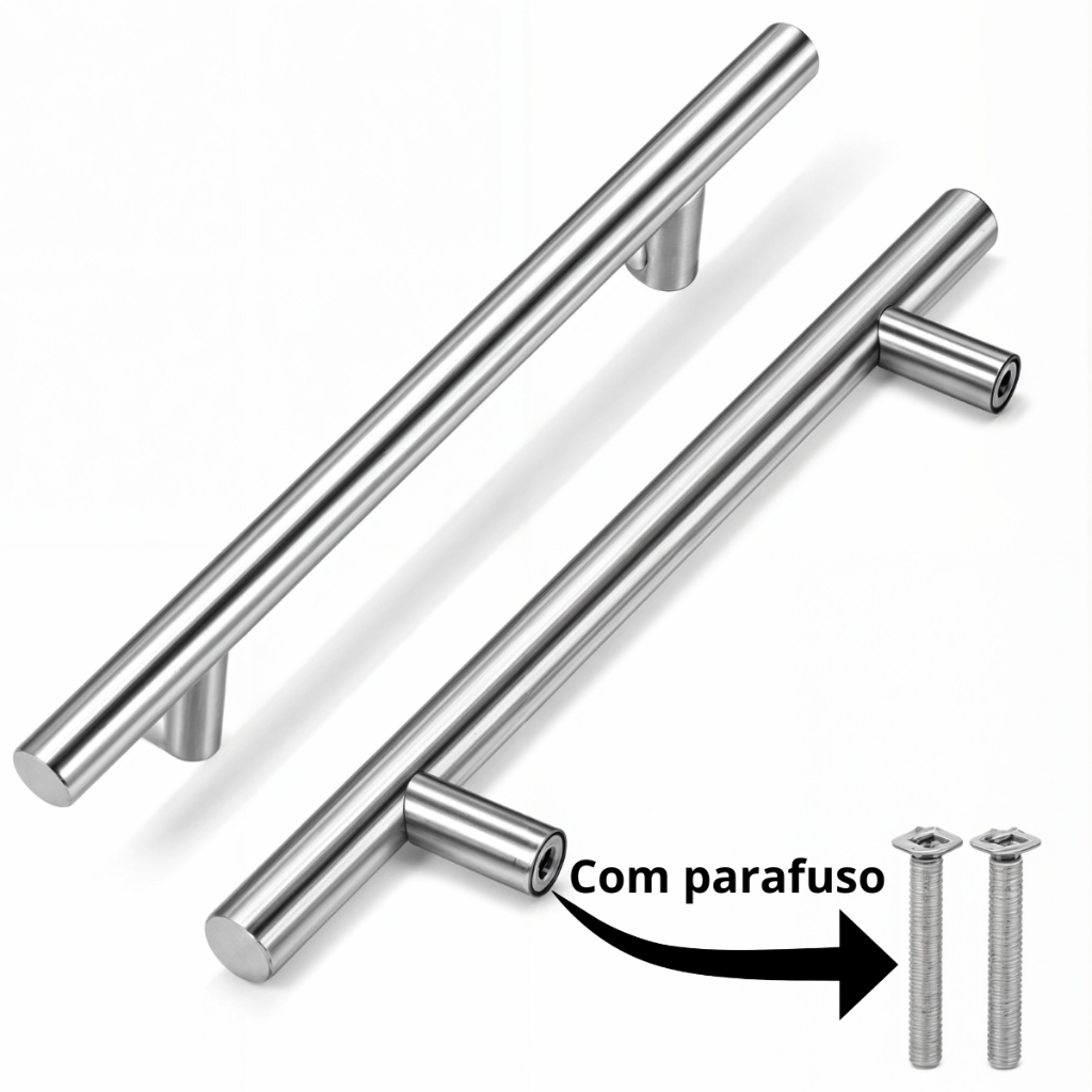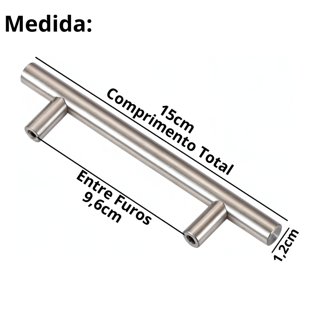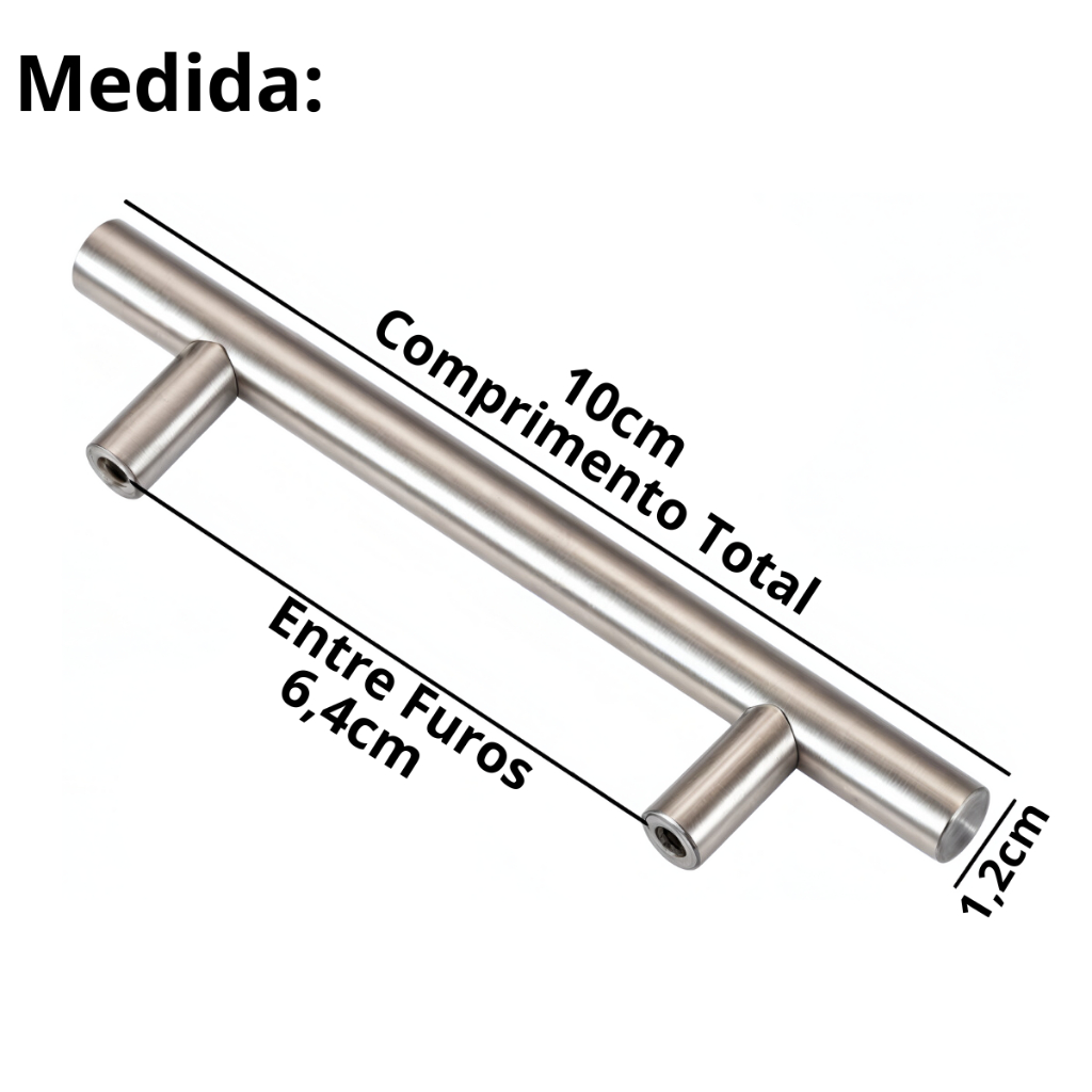 Kit 12 Puxador Móveis Haste Redonda Inox Escovado 64/96/128/160/192mm