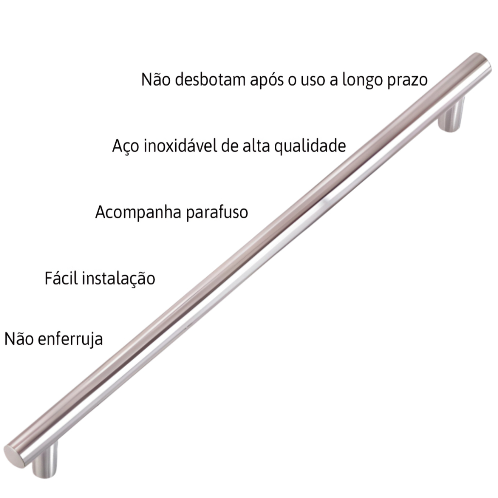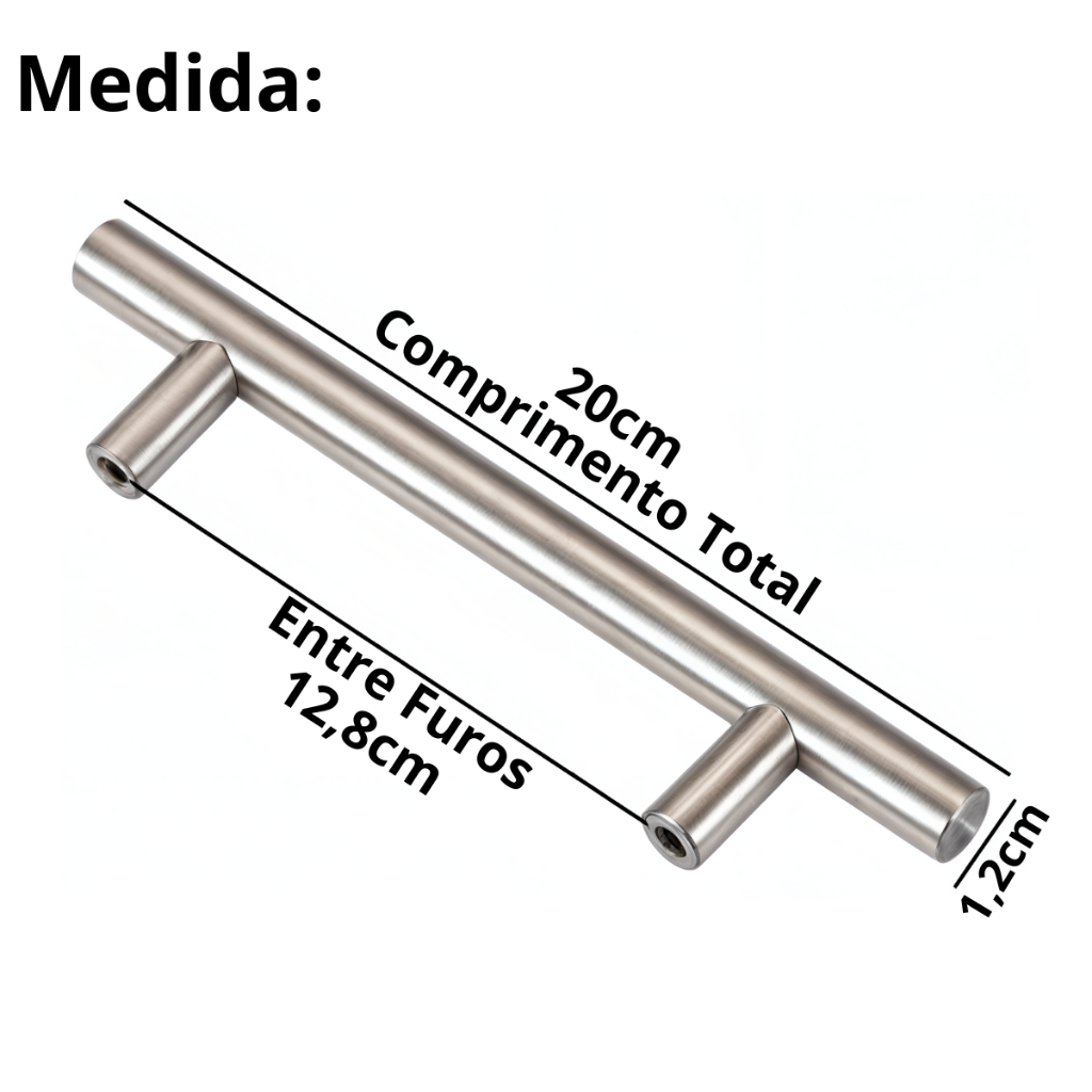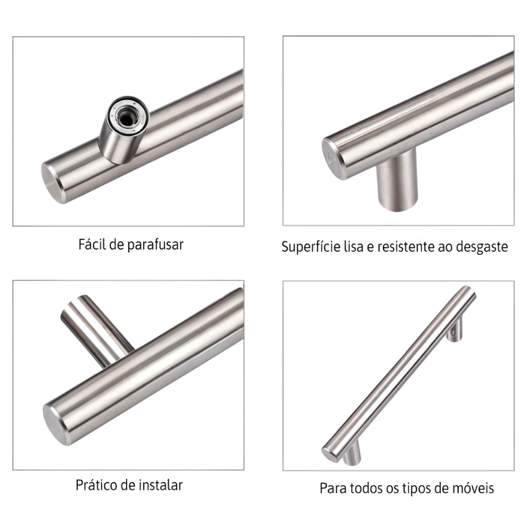 Kit 12 Puxador Móveis Haste Redonda Inox Escovado 64/96/128/160/192mm
