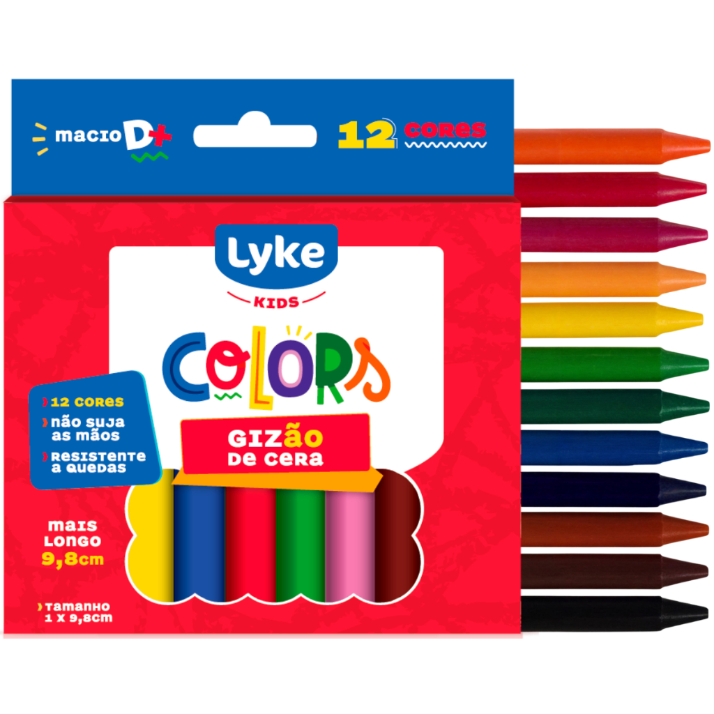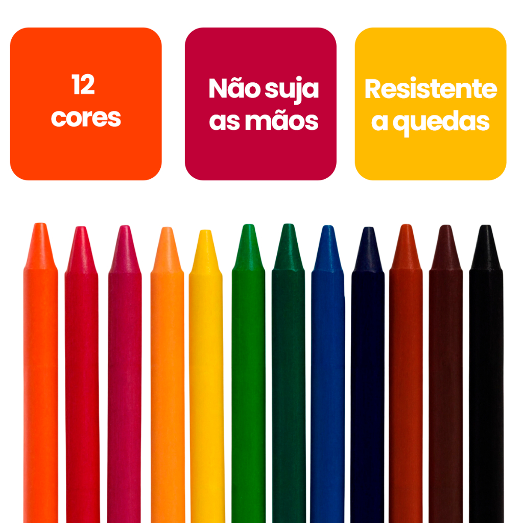 Kit 12 Cores Giz De Cera Gizão Traço Macio Jumbo Material Escolar