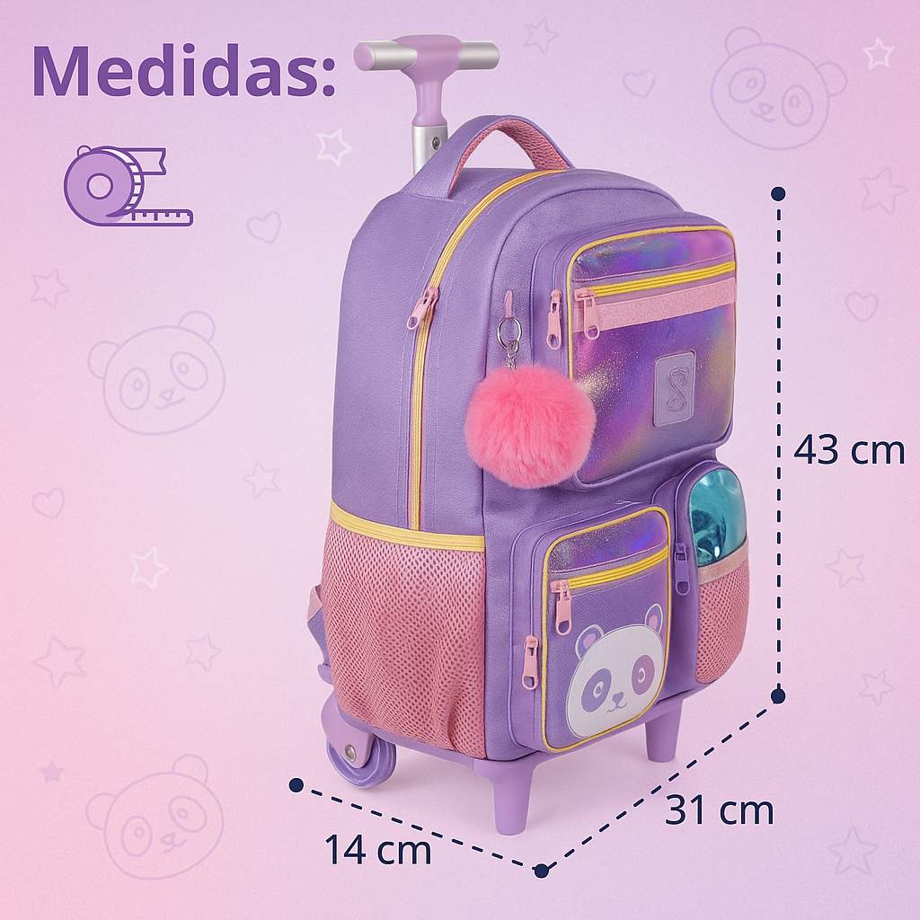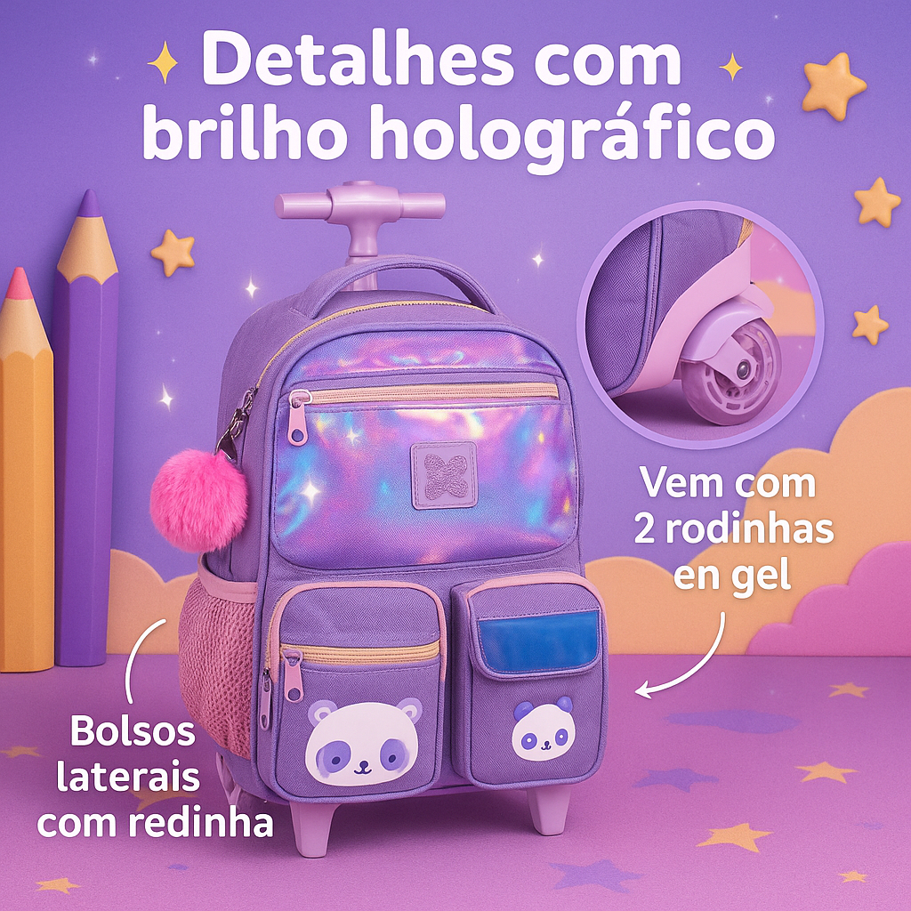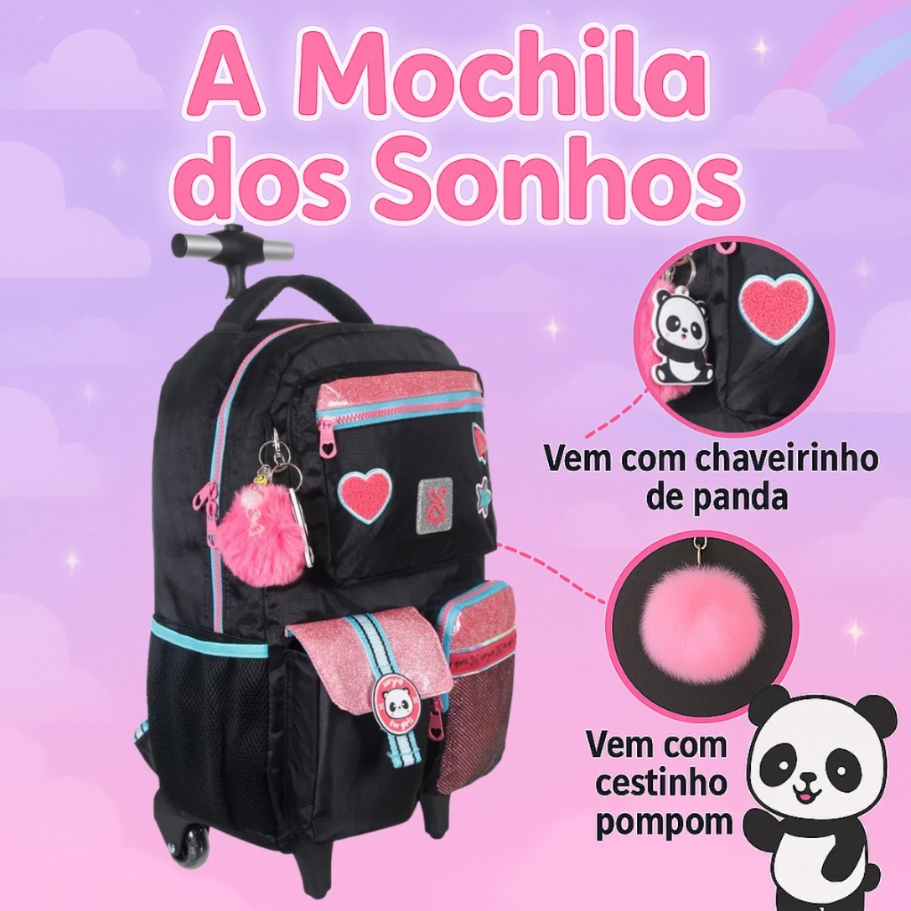 Mochila De Rodinhas Escolar Feminina Panda Juvenil Chaveiro