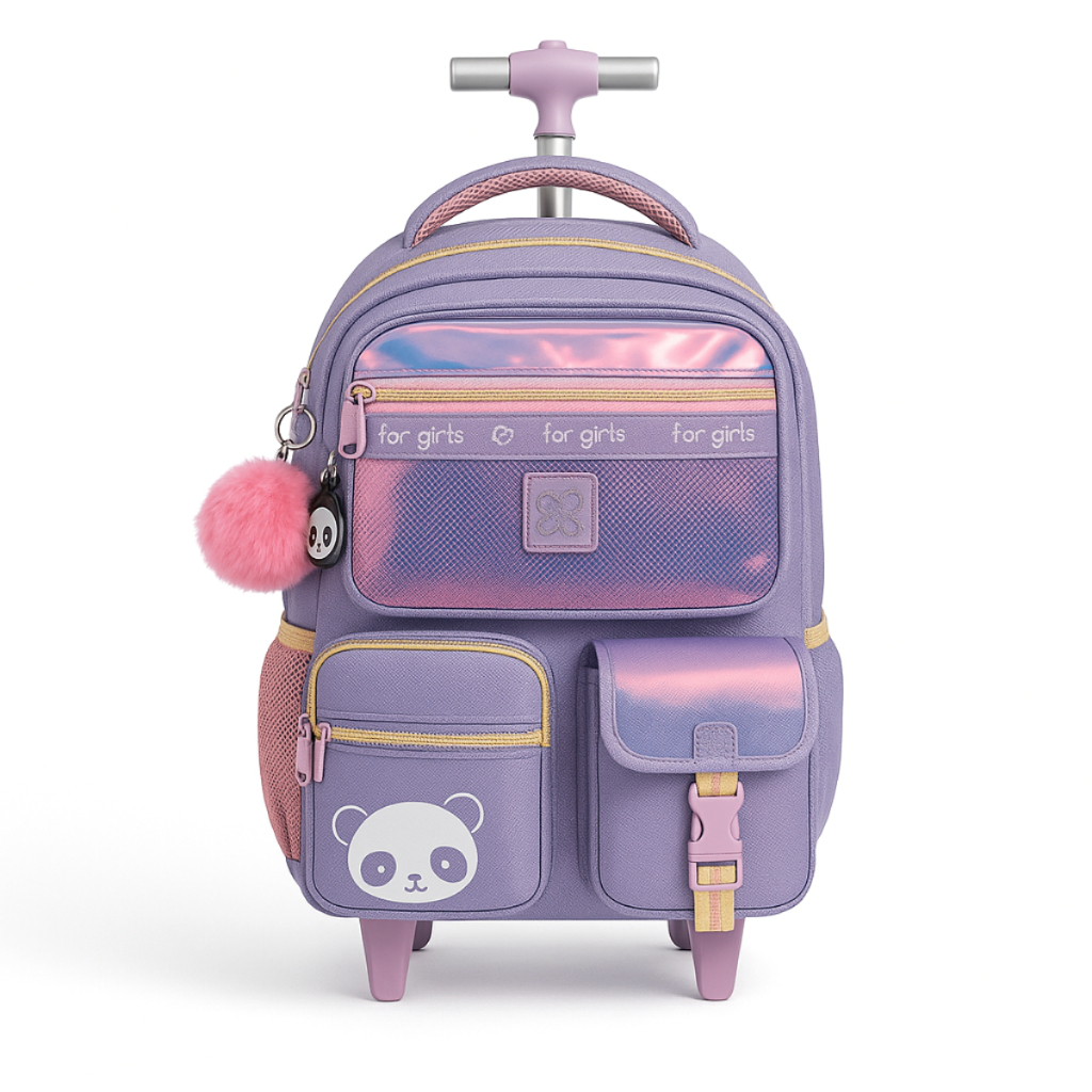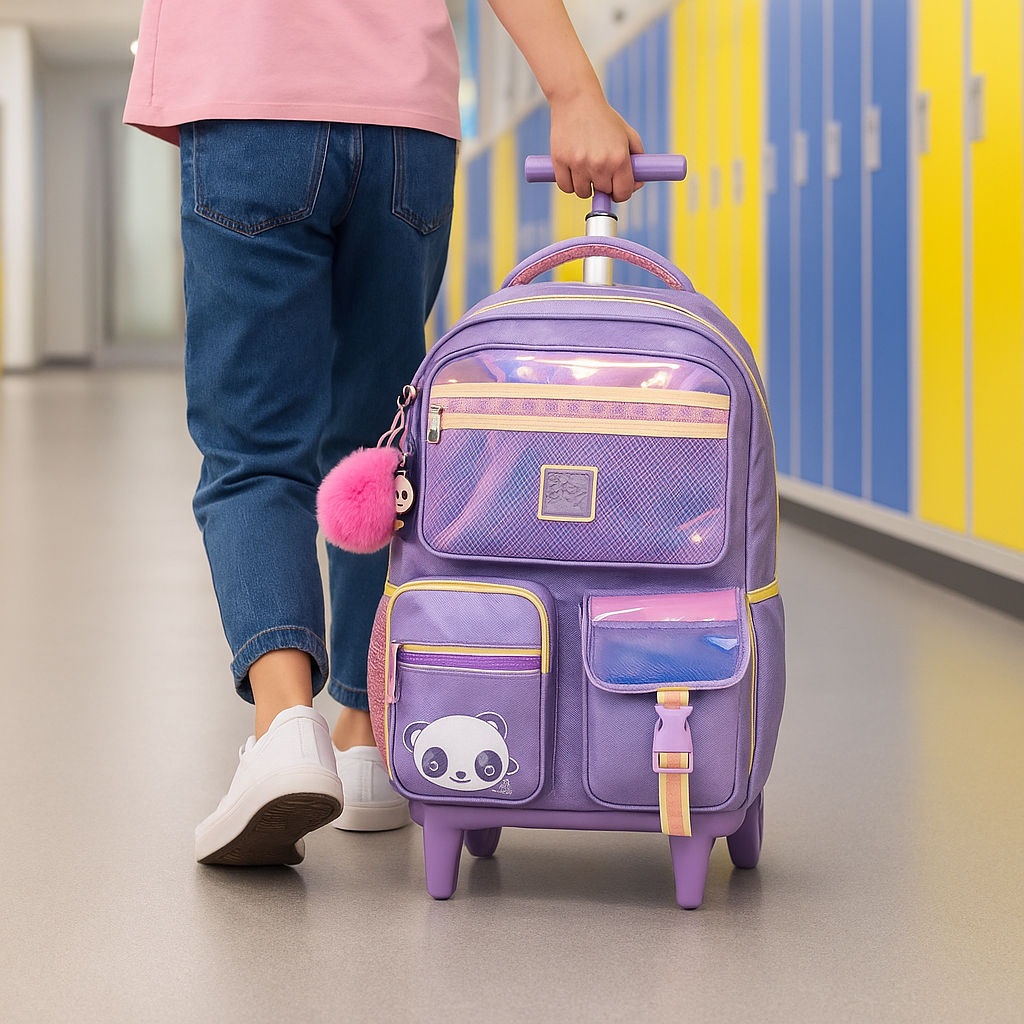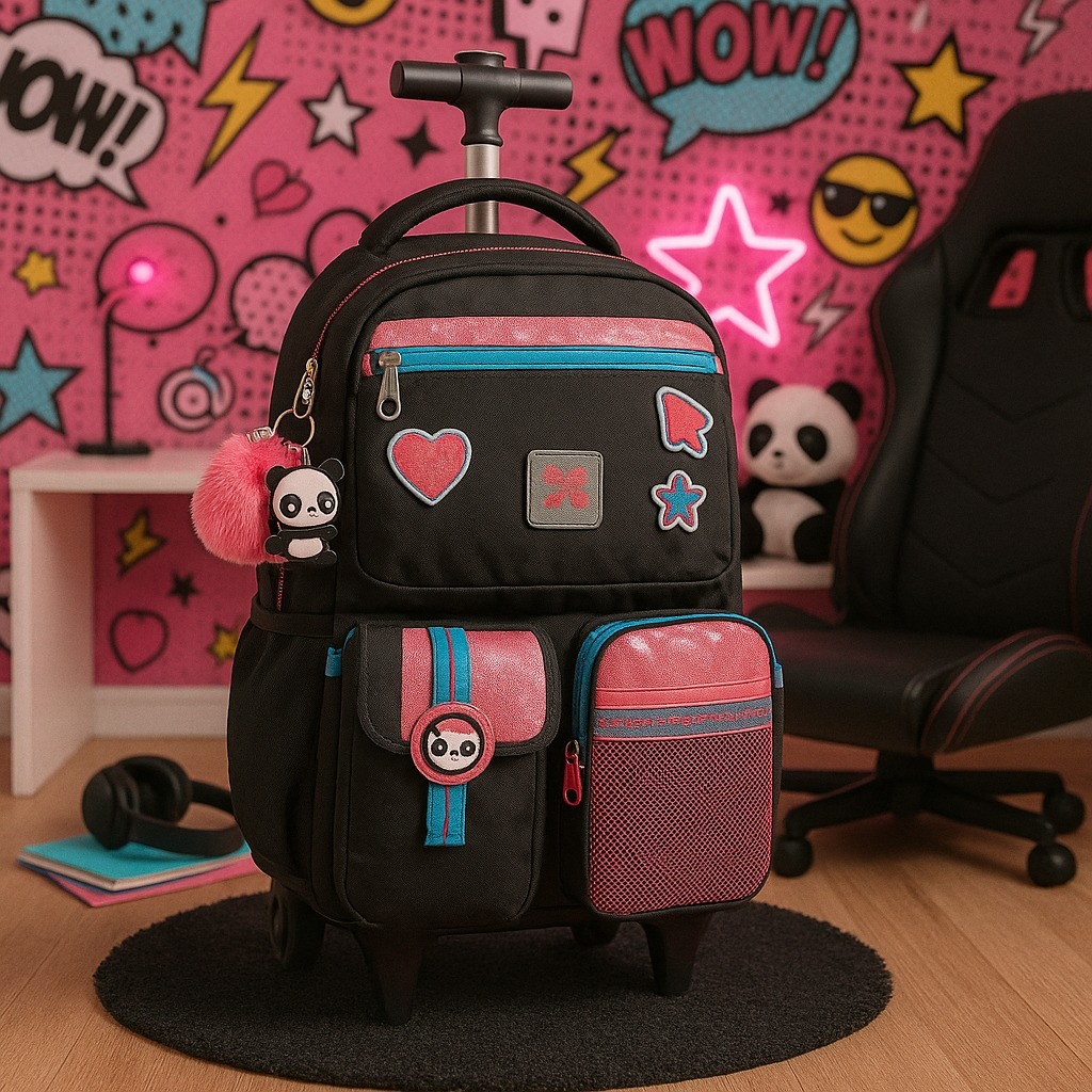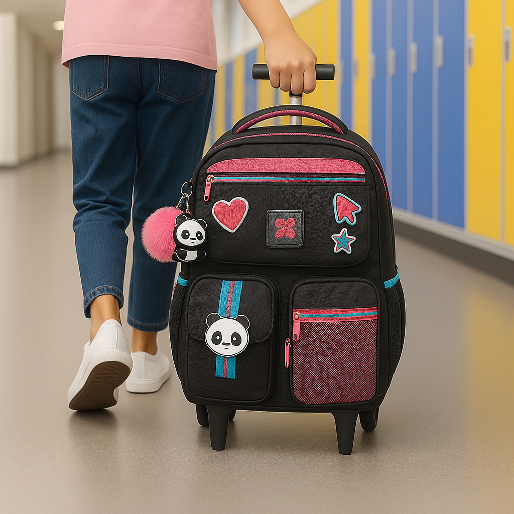 Mochila De Rodinhas Escolar Feminina Panda Juvenil Chaveiro