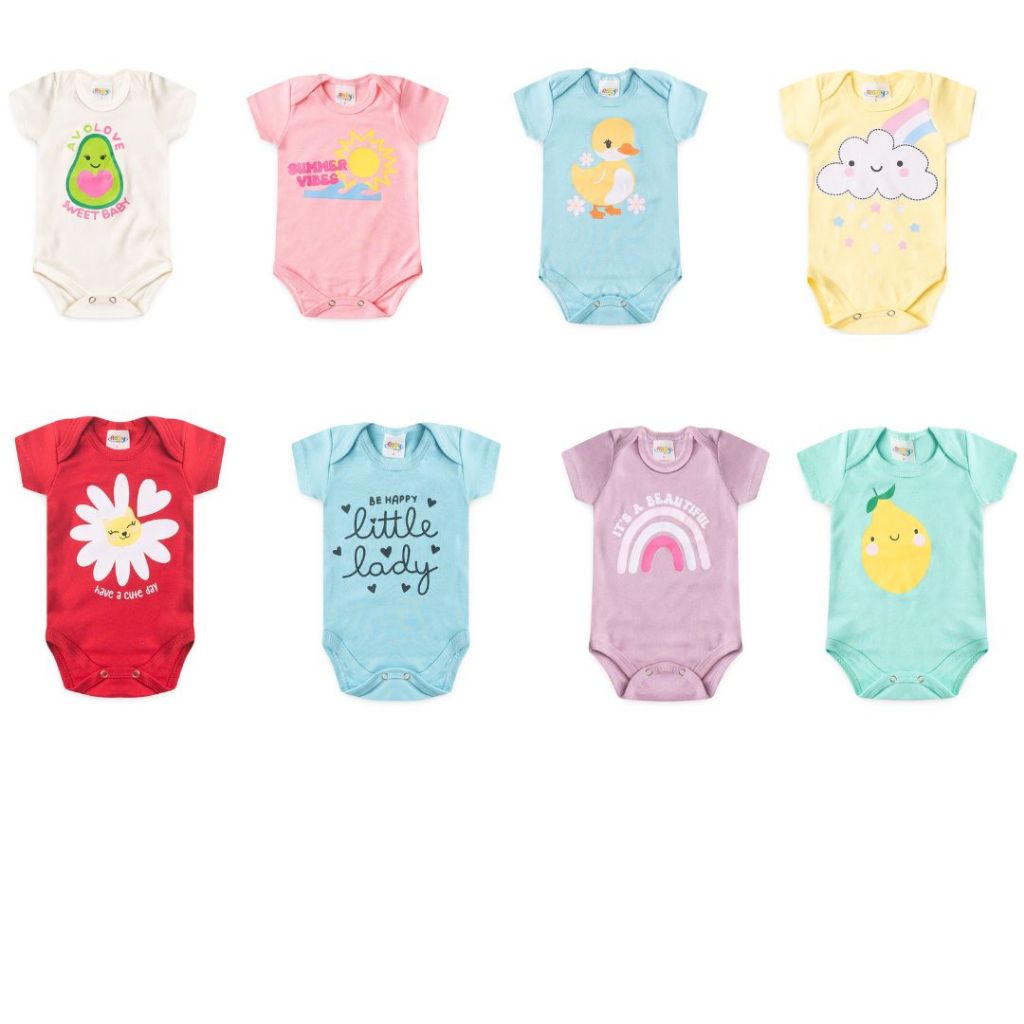 Kit 5 Peças Body Bebê Avulso Menina Verão Manga Curta Sortida Suedine 100% Algodão P ao GG