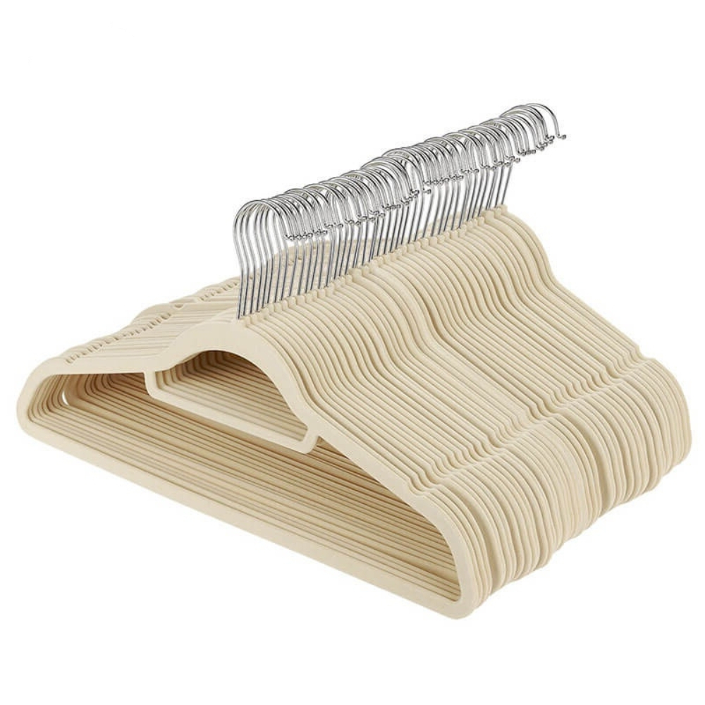 Kit 100 Cabides De Veludo Slim Ultra Finos Antideslizantes Bege