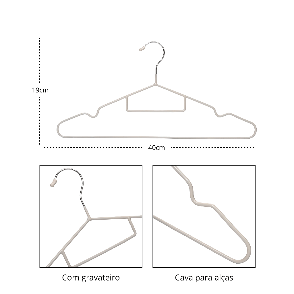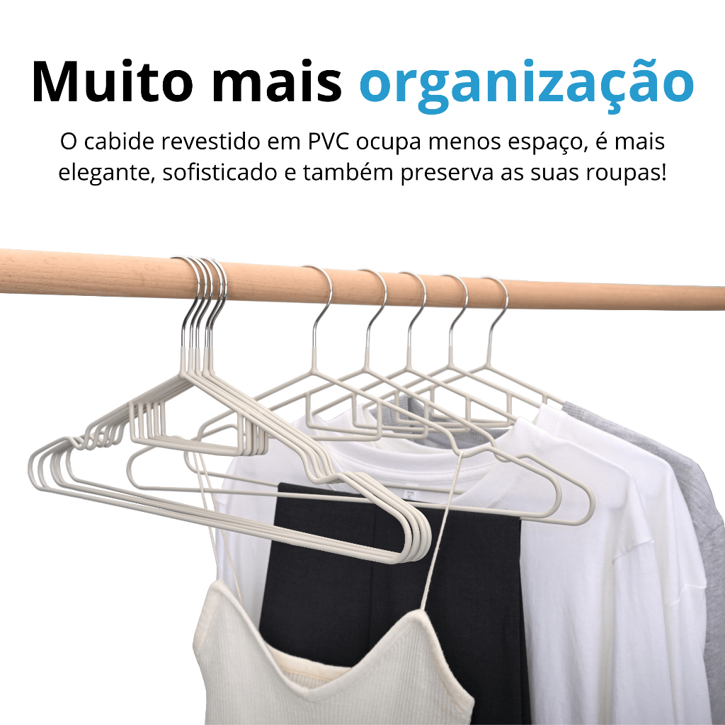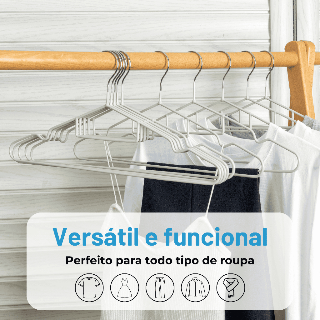 Kit 40 Cabides Cinza Metal Emborrachado PVC Antideslizante - Organização de Roupas Adulto