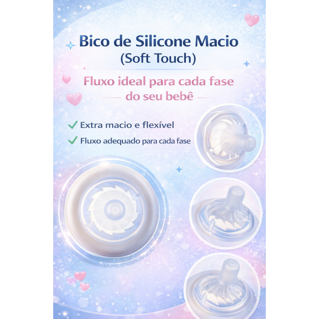 Mamadeira Bico De Silicone Antirrefluxo (SOFT TOUCH) Perfeita Vedação Ergonomica Translucida