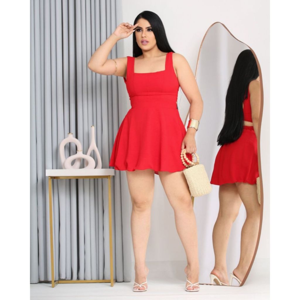 Macaquinho Curto Feminino Duna Soltinho Moda Feminino Vestido Saia Acinturado Forrado Verão Casual