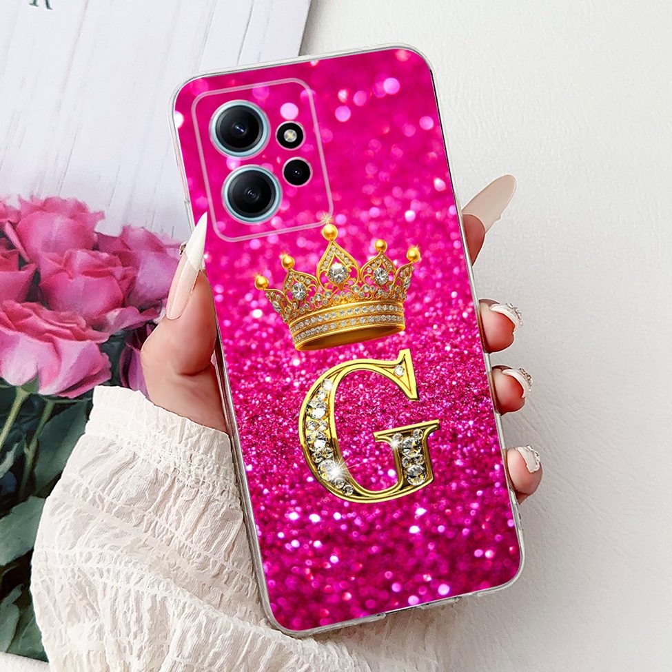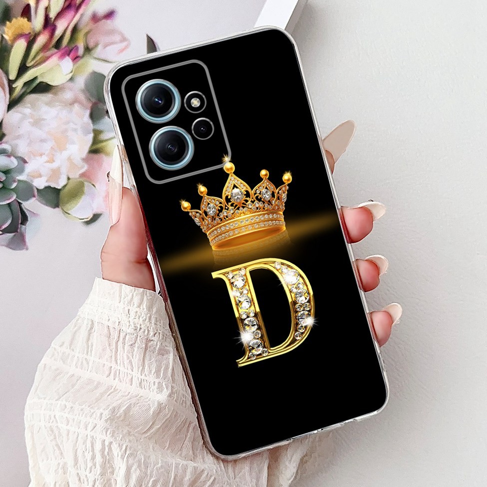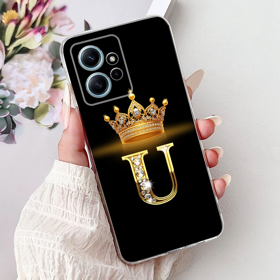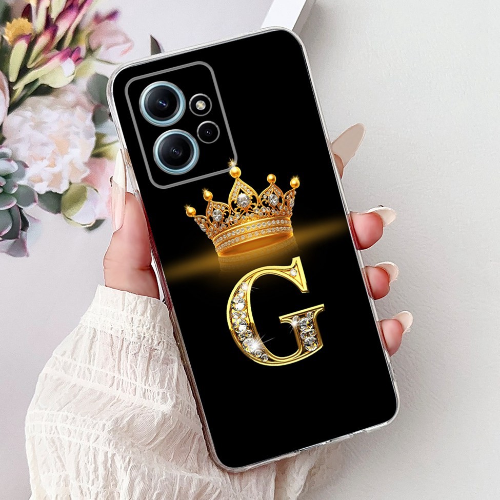 Para Redmi Nota 12 4G Capa Traseira Caso Nova Moda Luxo Az Letras Coroa Macio TPU De Telefone