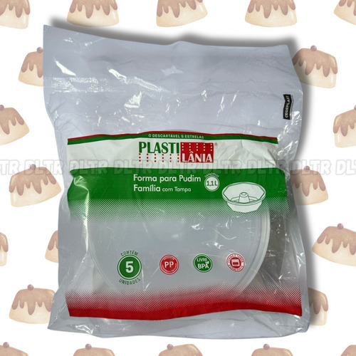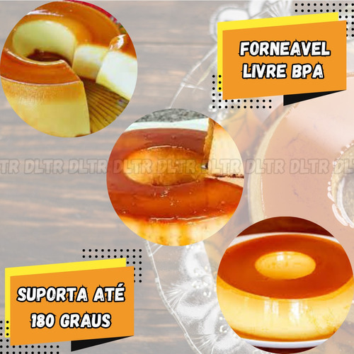 Forma de Pudim Redonda com Tampa Forma Forneavel Tamanho Familia c/ 5un 1100ml