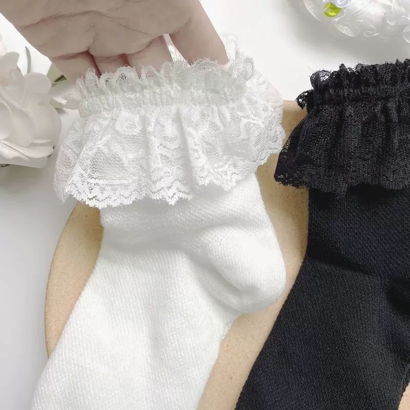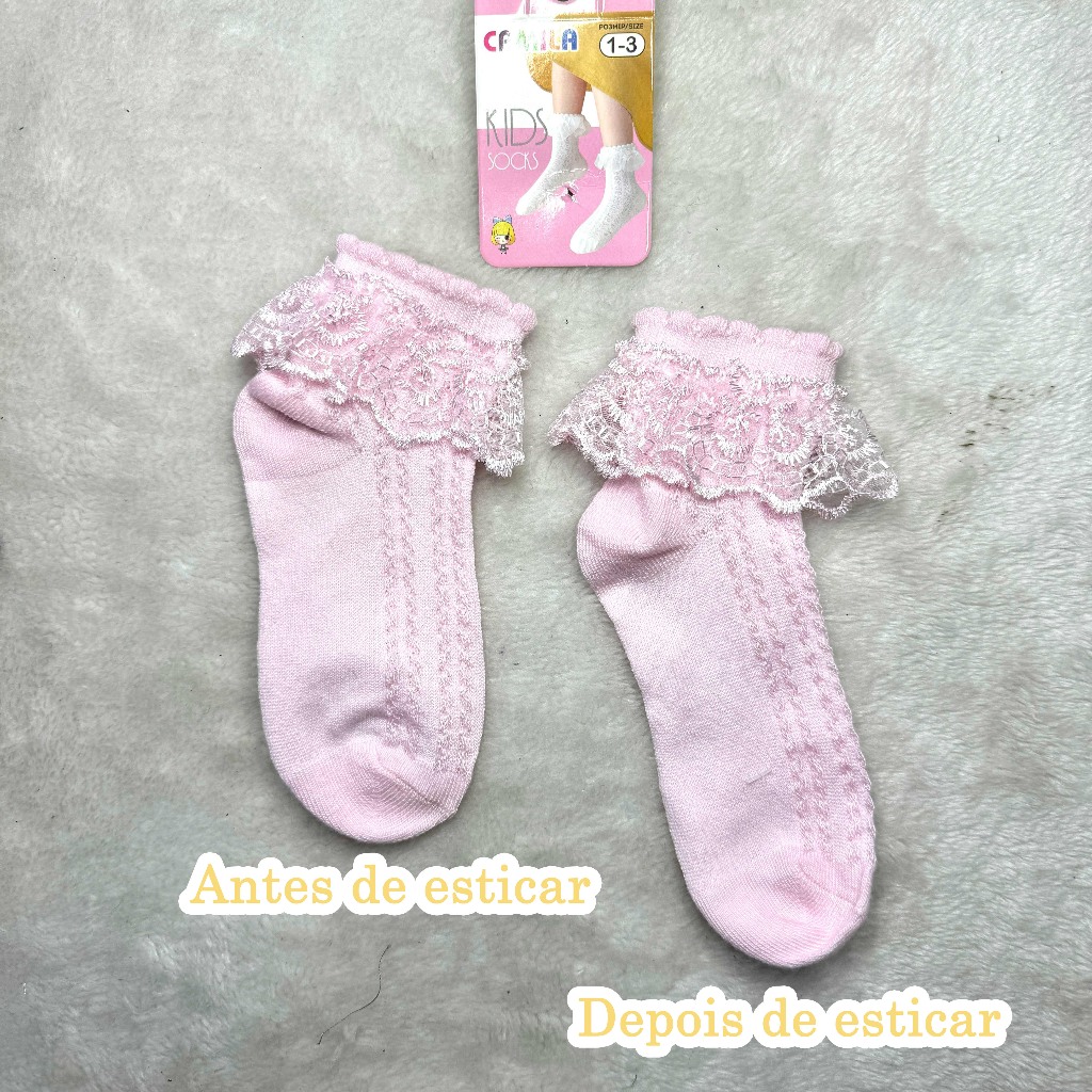 Meias Babado de Algodão Meninas infantil cano curto babado de renda batizada festa de aniversario 8005