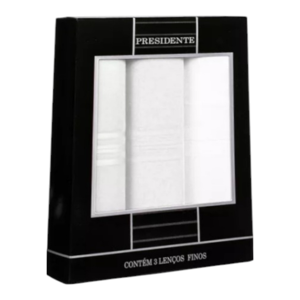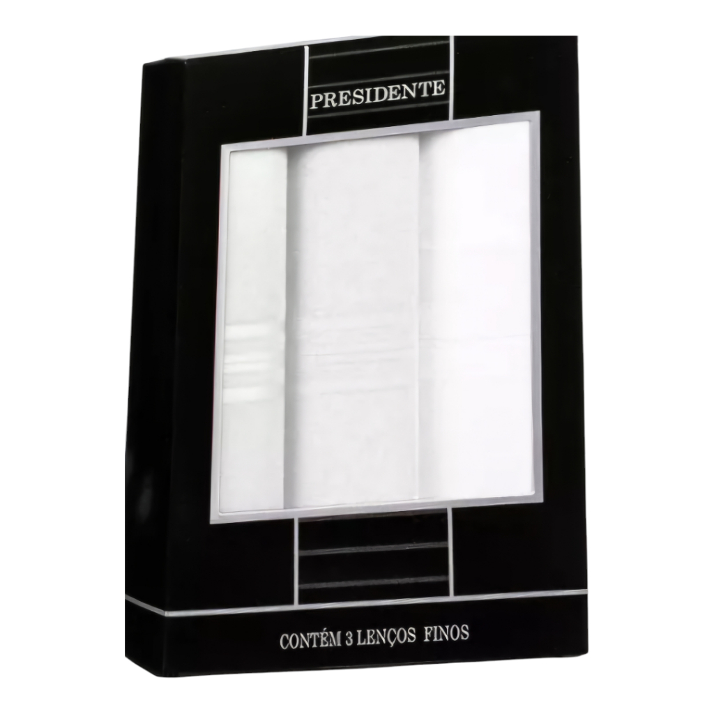 Caixa de Lenços Masculinos Branco Presidente Algodão: Praticidade e Elegância.