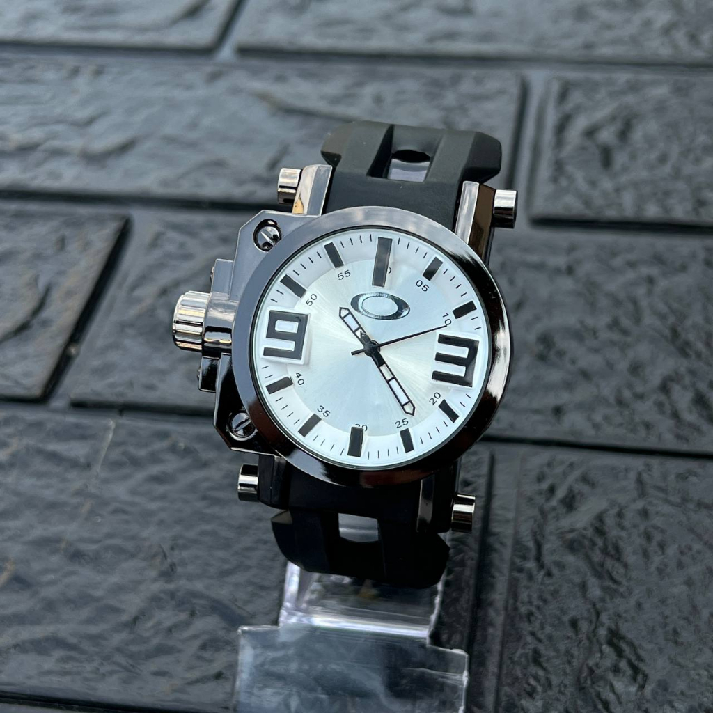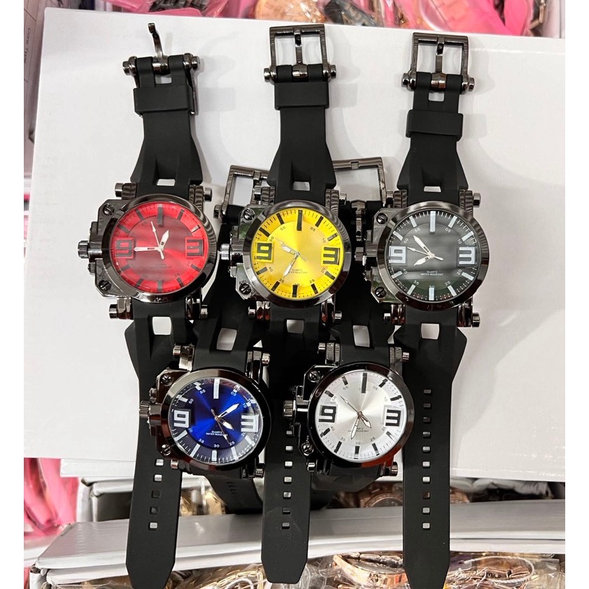 Relógio masculino de vidro estilo europeu e americano com pulseira de borracha