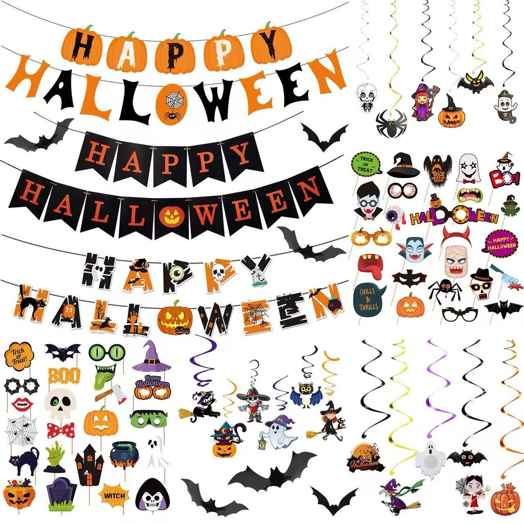 Kit Bandeirolas Halloween/Fantasmas / Abóboras e Morcegos / Decoração de Casa Assombrada