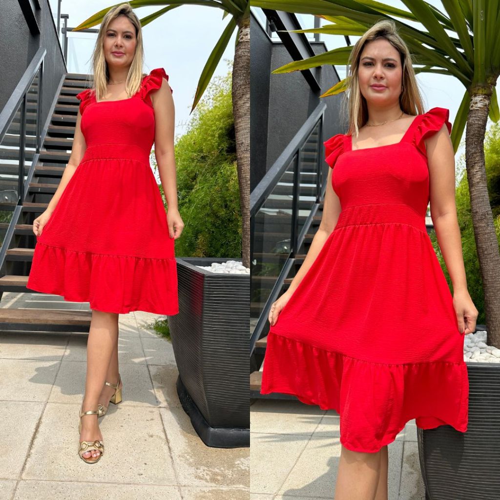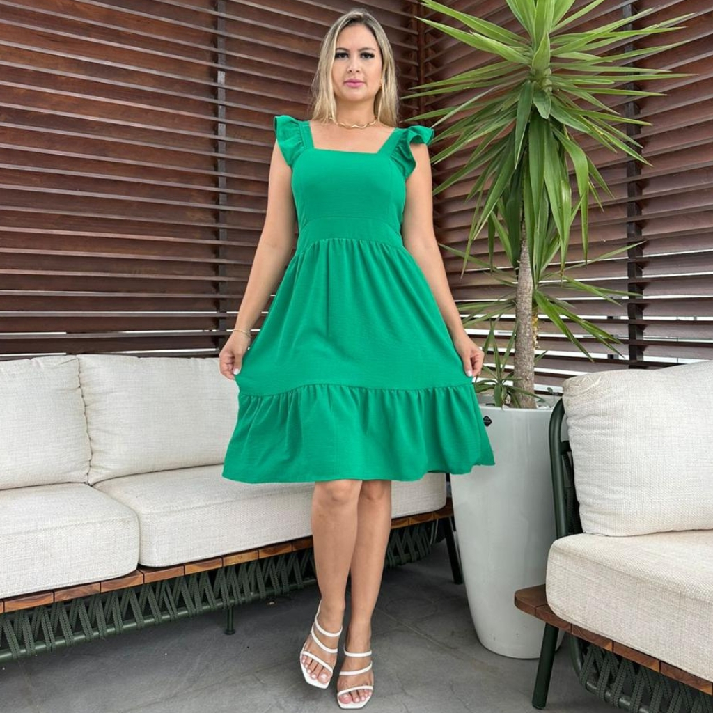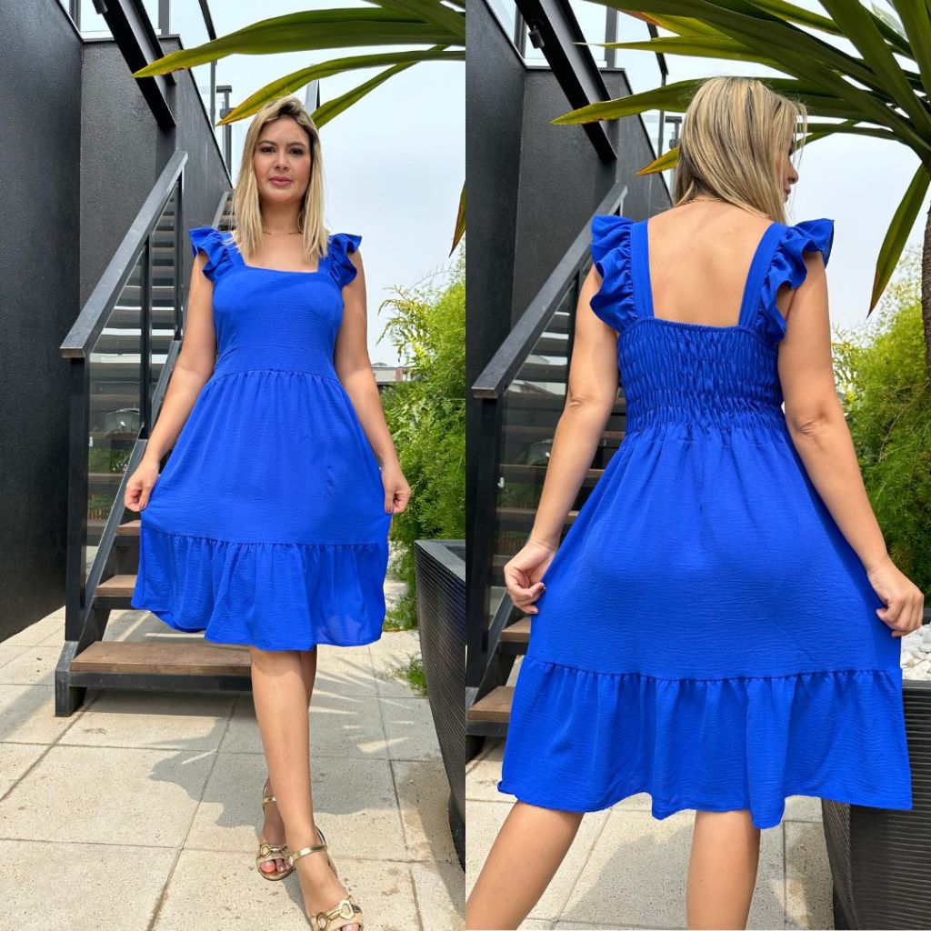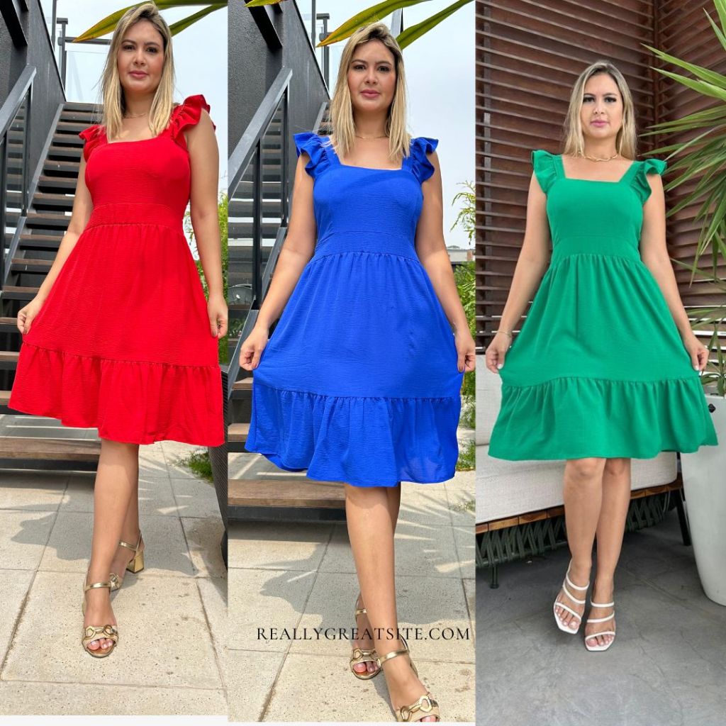 Vestido Feminino Curto Elegante Luxo Liso Soltinho Verão Confortável Duna Promoção Lastex nas Costas