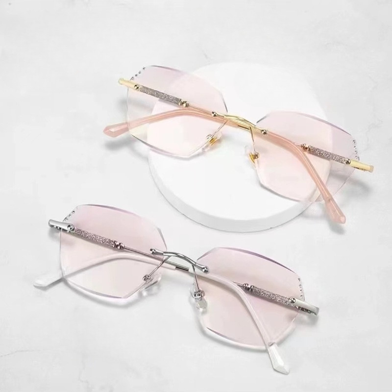 Novo Diamond Edge Guard Blue Light Fashion Frameless Lente Grande Sem Moldura Óculos De Presbiopia High end