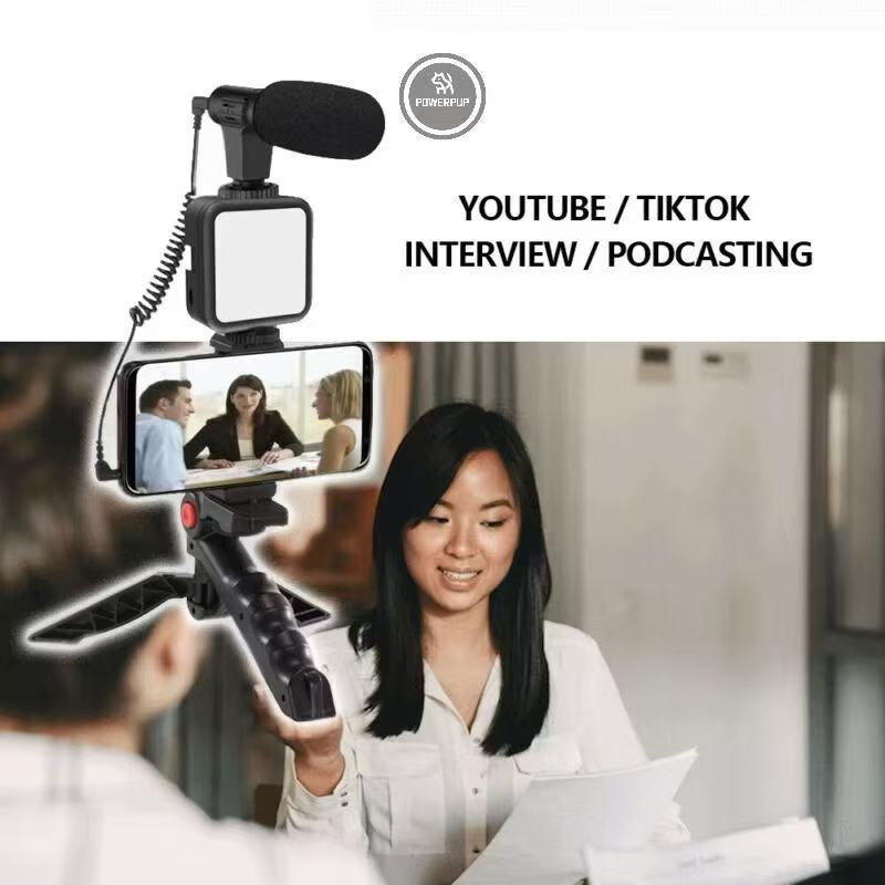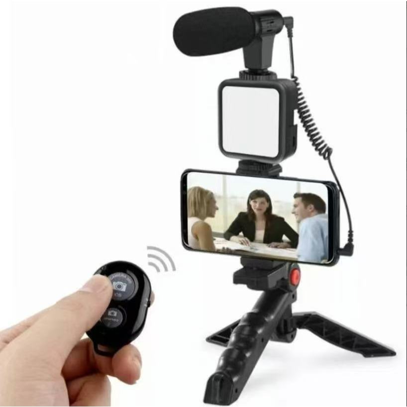 Tripé Estabilizador de Mão kit 5 em 1 gimbal Microfone Celular Gravação De Vídeo