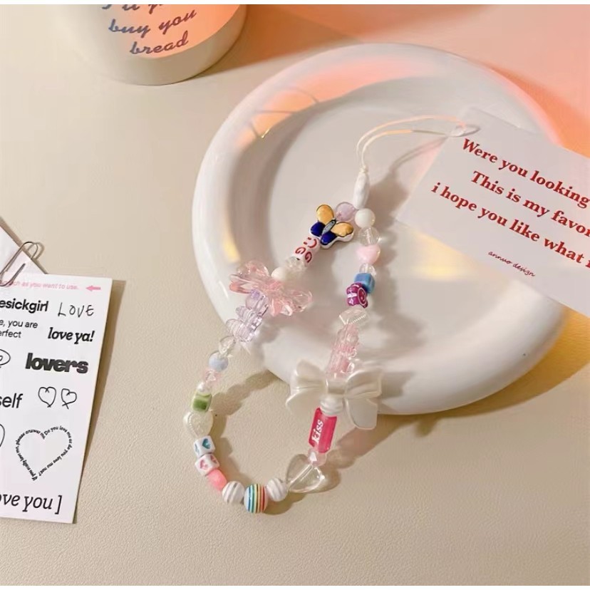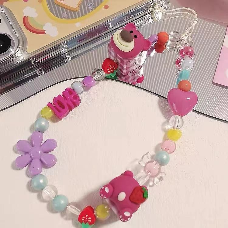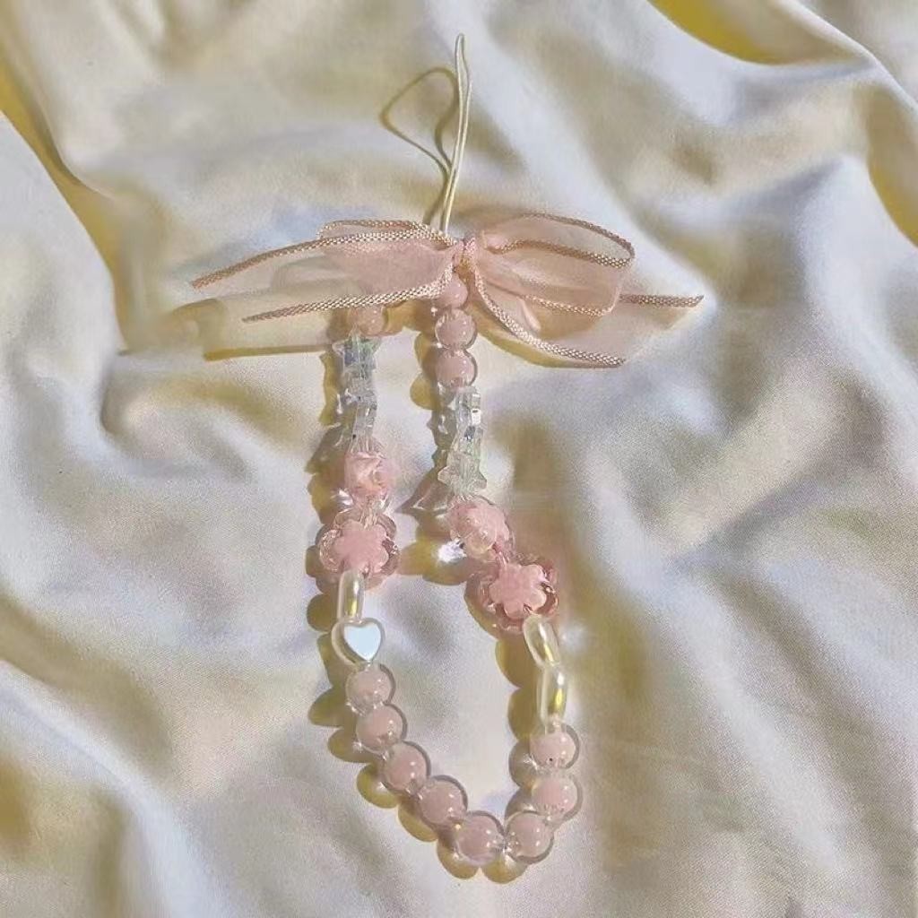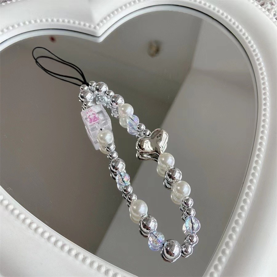 Adequado para todos os casos de telefone, braços, braços do coração de menina rosa de perla, cordas penduradas