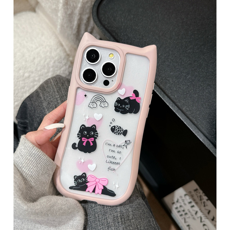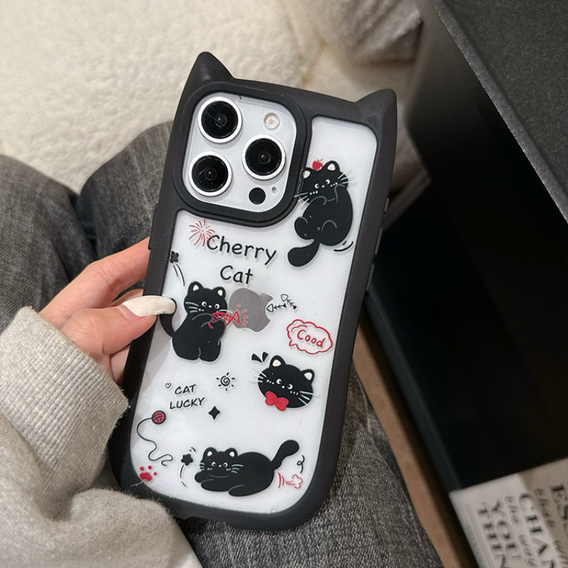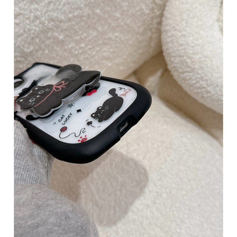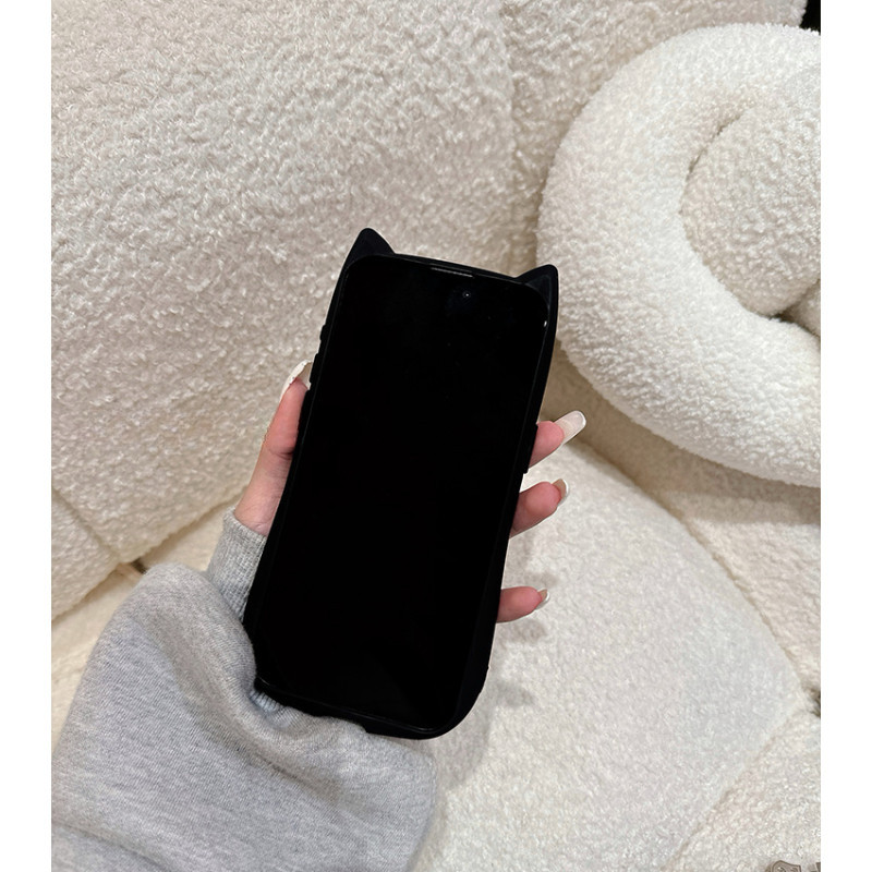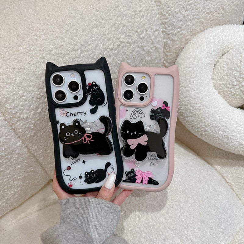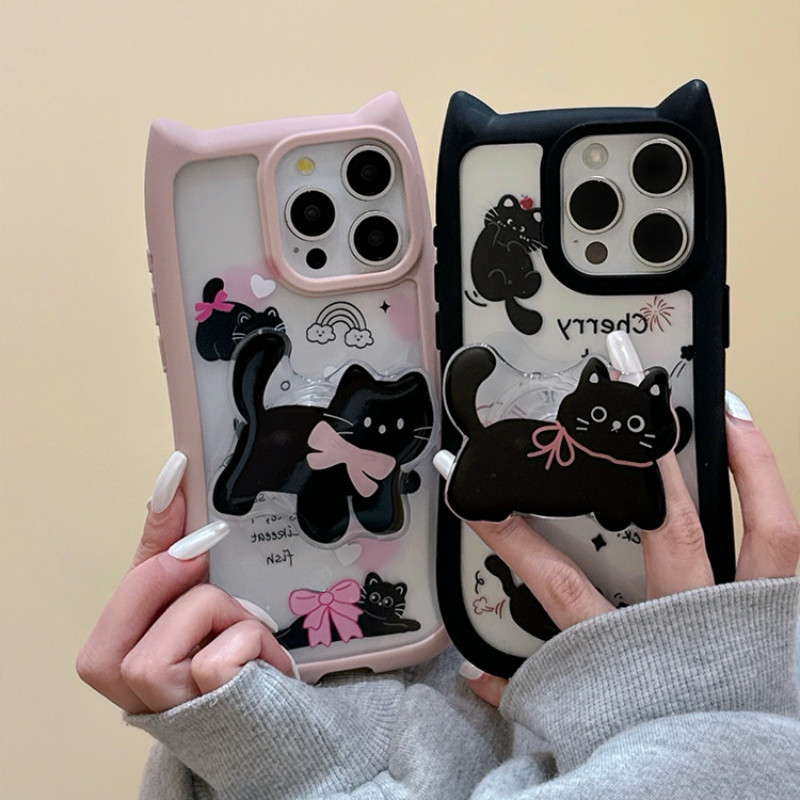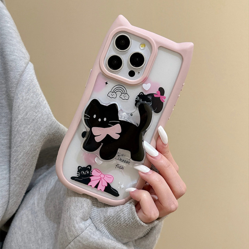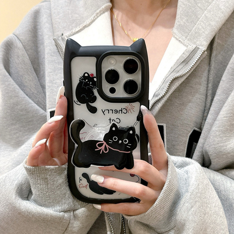Para IPhone 15 14 13 12 11 Pro Max X XR 7 8 Plus Criativo Coreano Bonito Gato 3D Alça De Orelha Suporte Caso De Telefone
