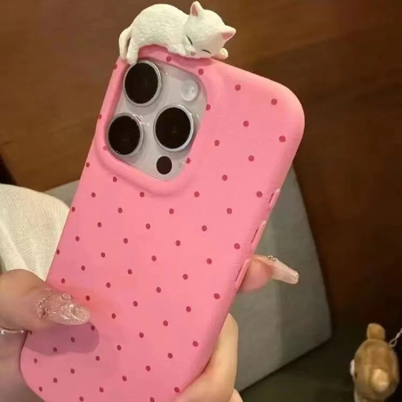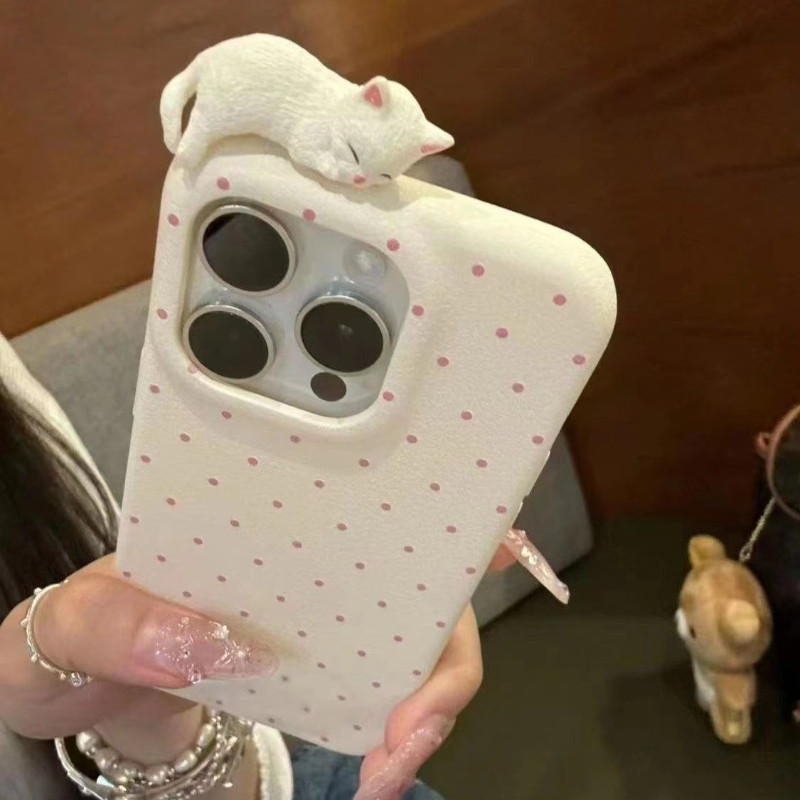 Para IPhone 16 15 14 13 12 11 Pro Max X XR XS 7 8 Plus Dos Desenhos Animados Bonito 3D Gato Bolinhas Couro Caso De Telef