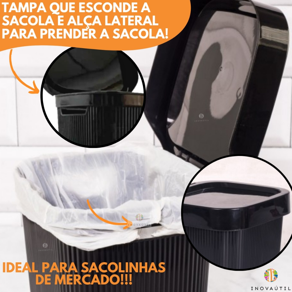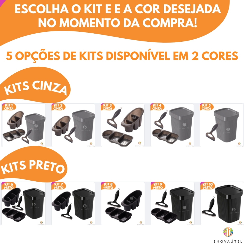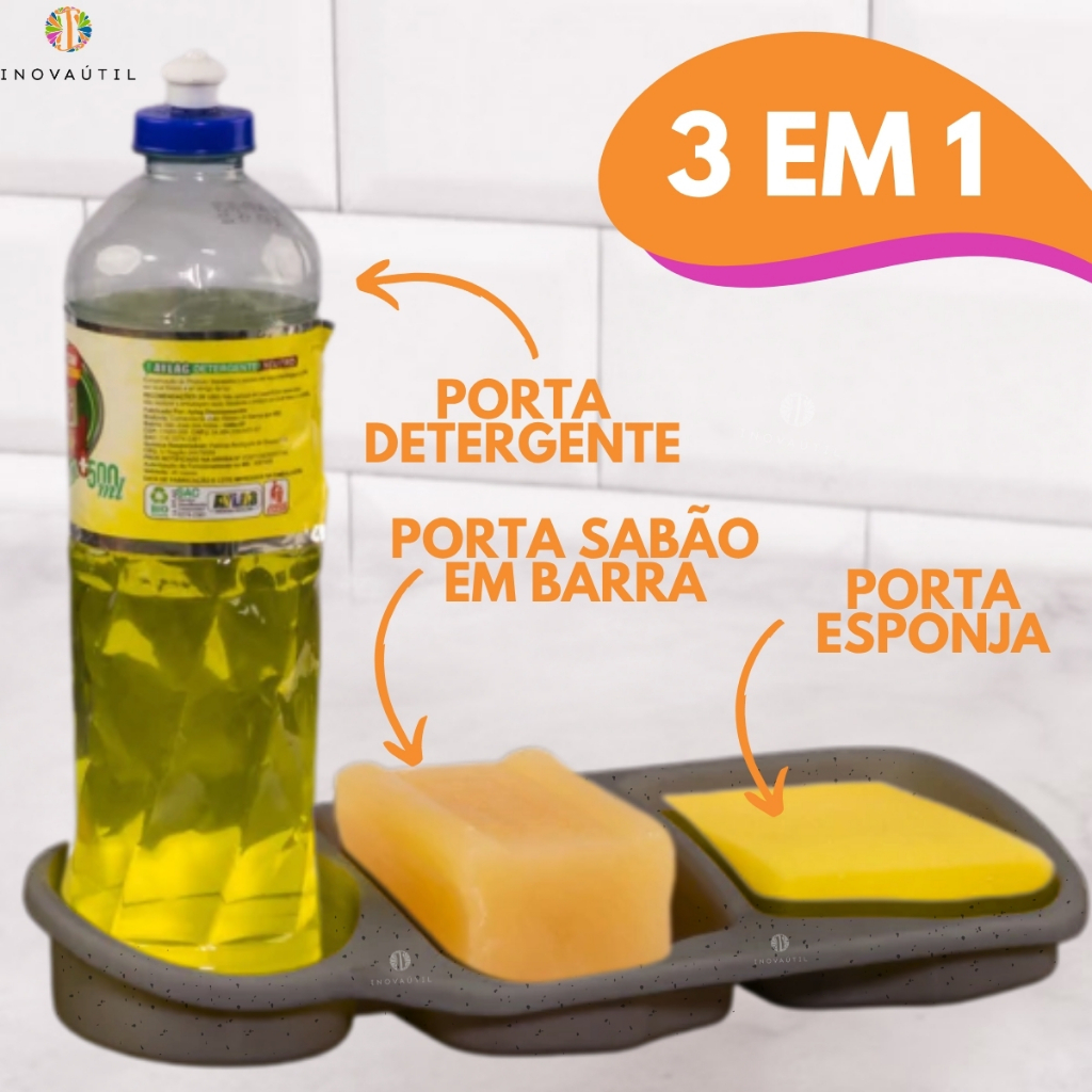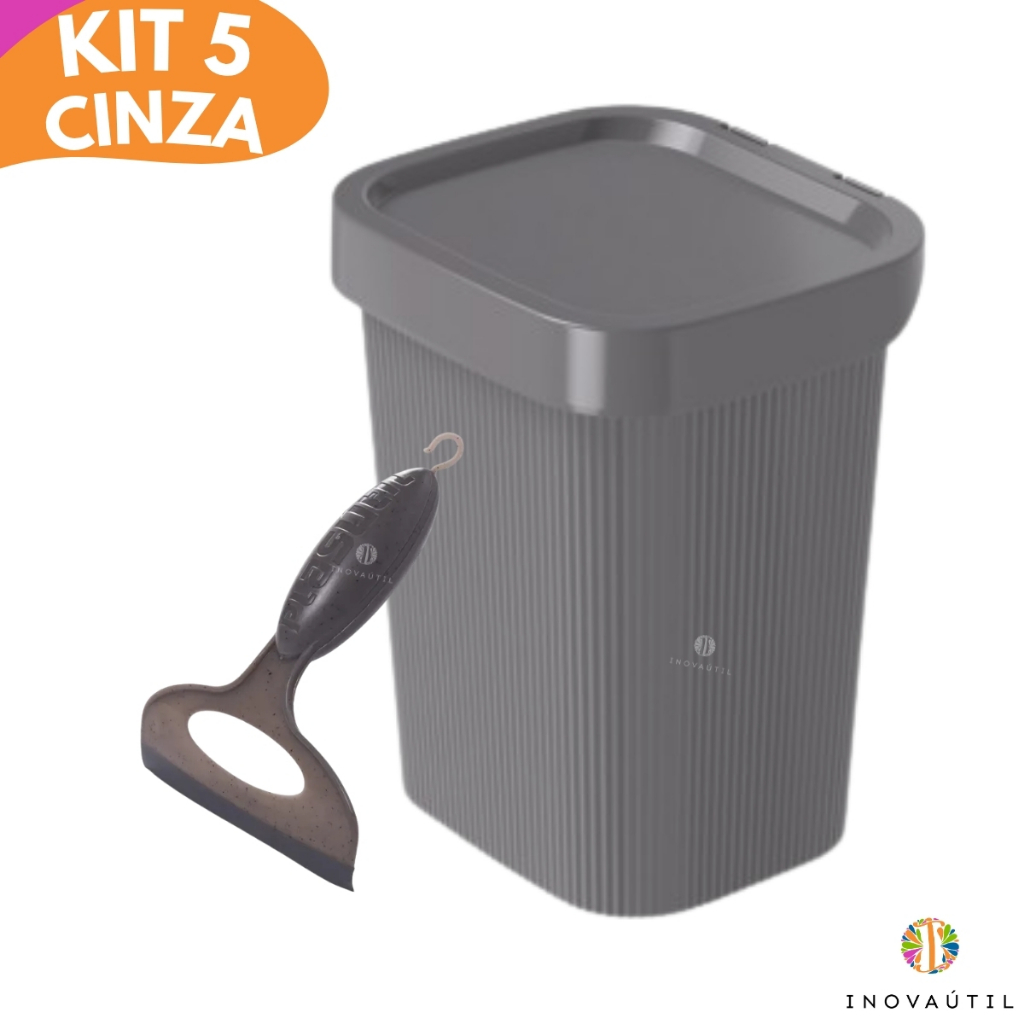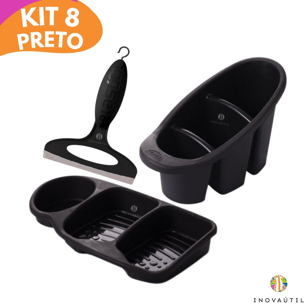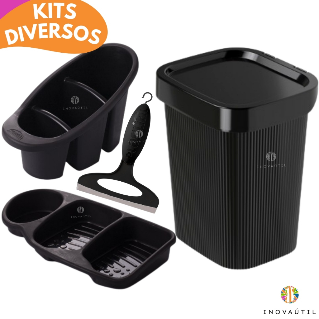 Kit Pia Cozinha Lixeira Friso, Porta Talher Escorredor, Porta Detergente 3em1 e Rodinho