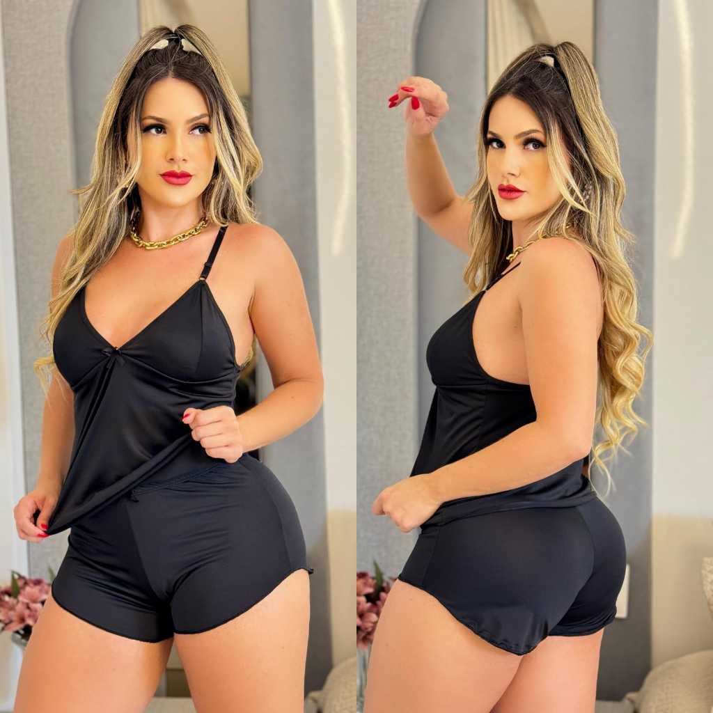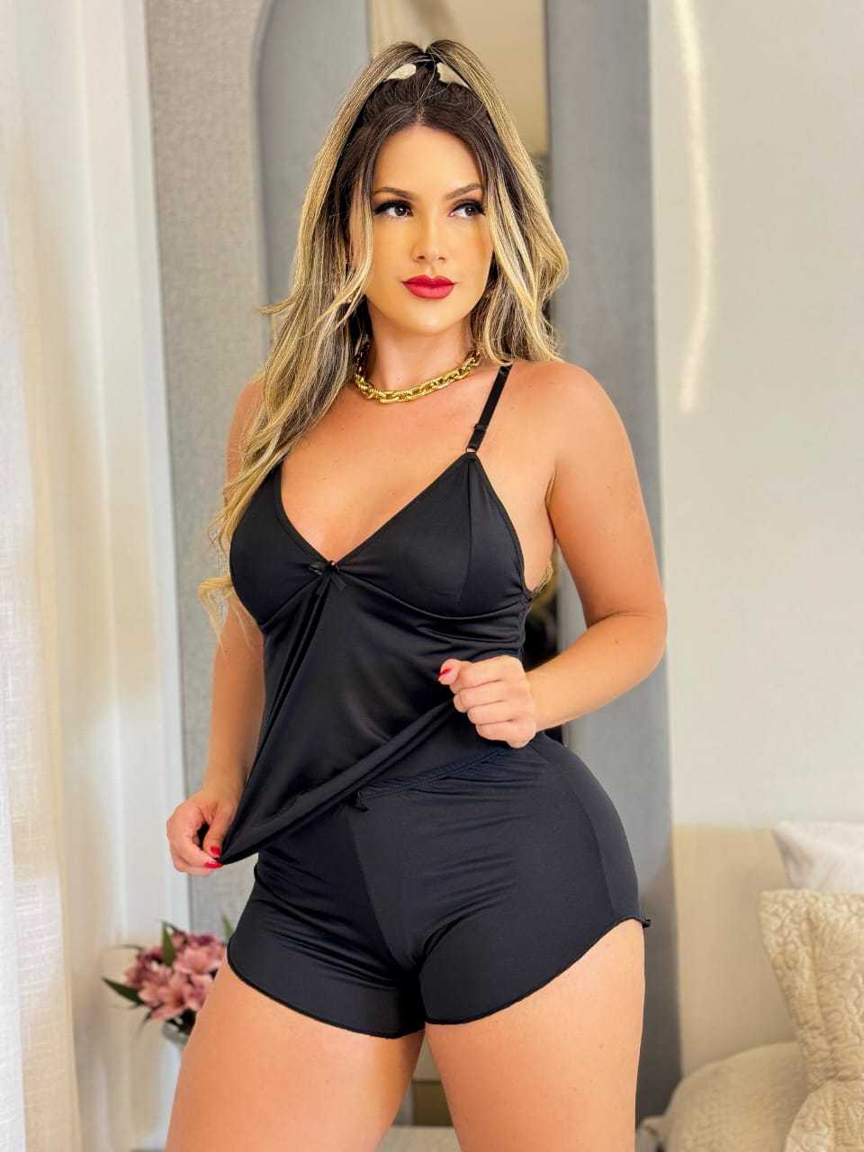Pijama Baby Doll Feminino de Liganete Liso Malha Fria sem Bojo Sensual Roupa de Dormir Premium