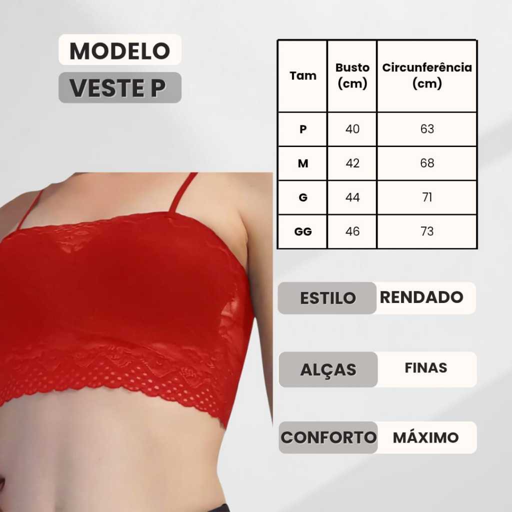 Sutia Top Cropped Faixa em Renda com Bojo e Alça Fina Lingerie Rendado Alcinha