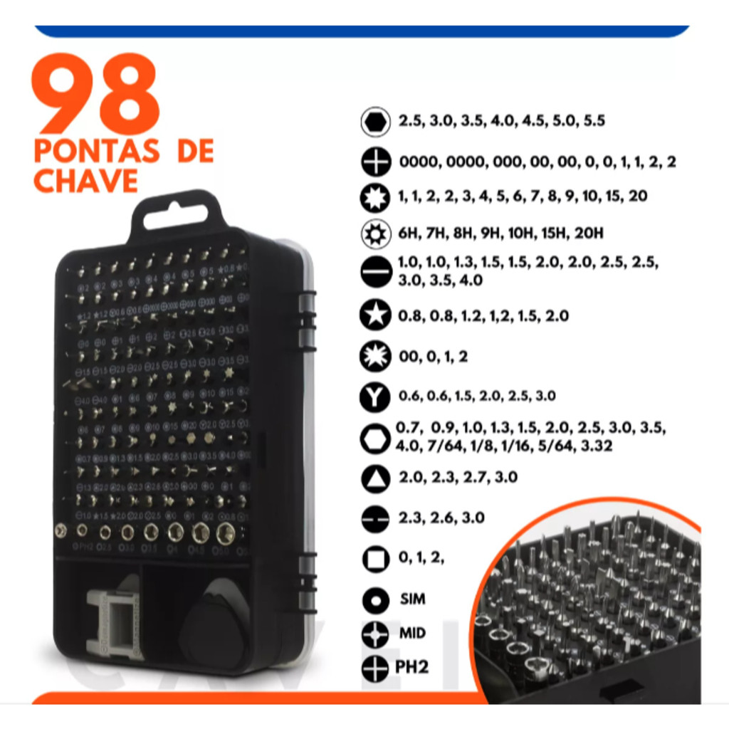 Kit Ferramenta 115 Chaves Precisão Celular / Notebook / Tablet