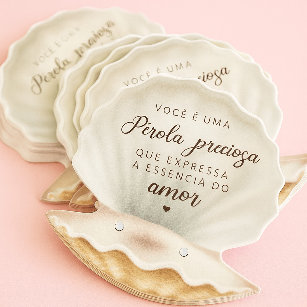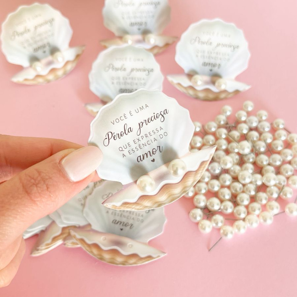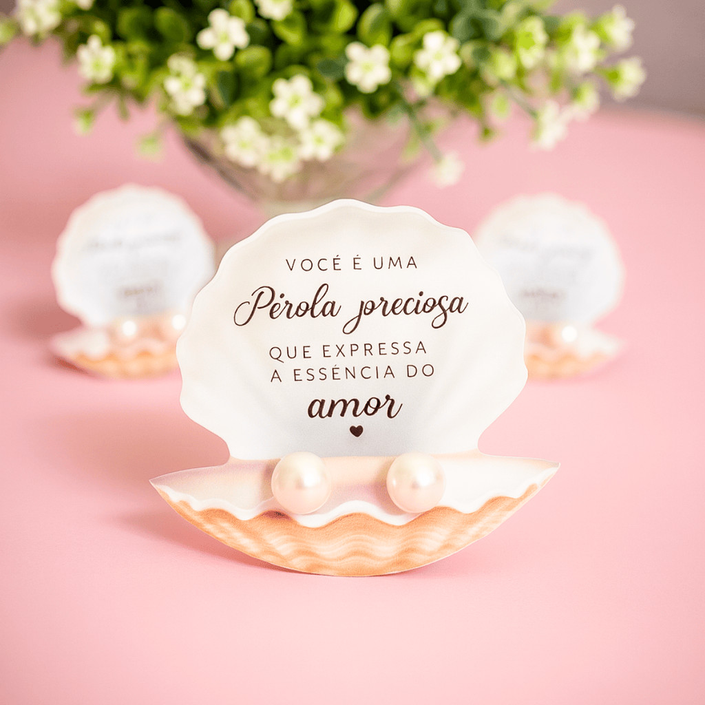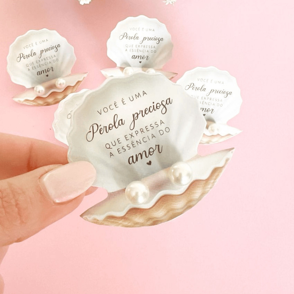Mini Cartão Tag Concha + Brincos de Perola Pronta Entrega 5x5cm Mimo Cliente