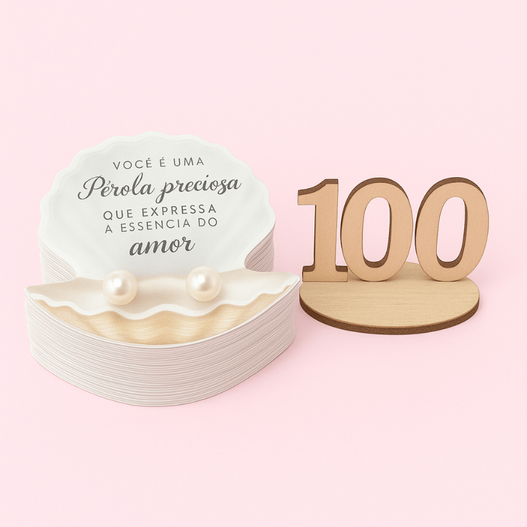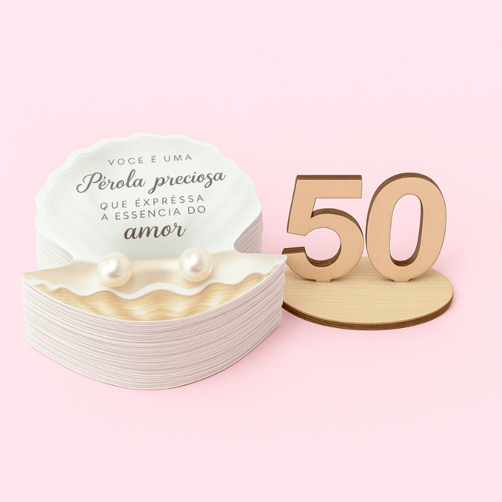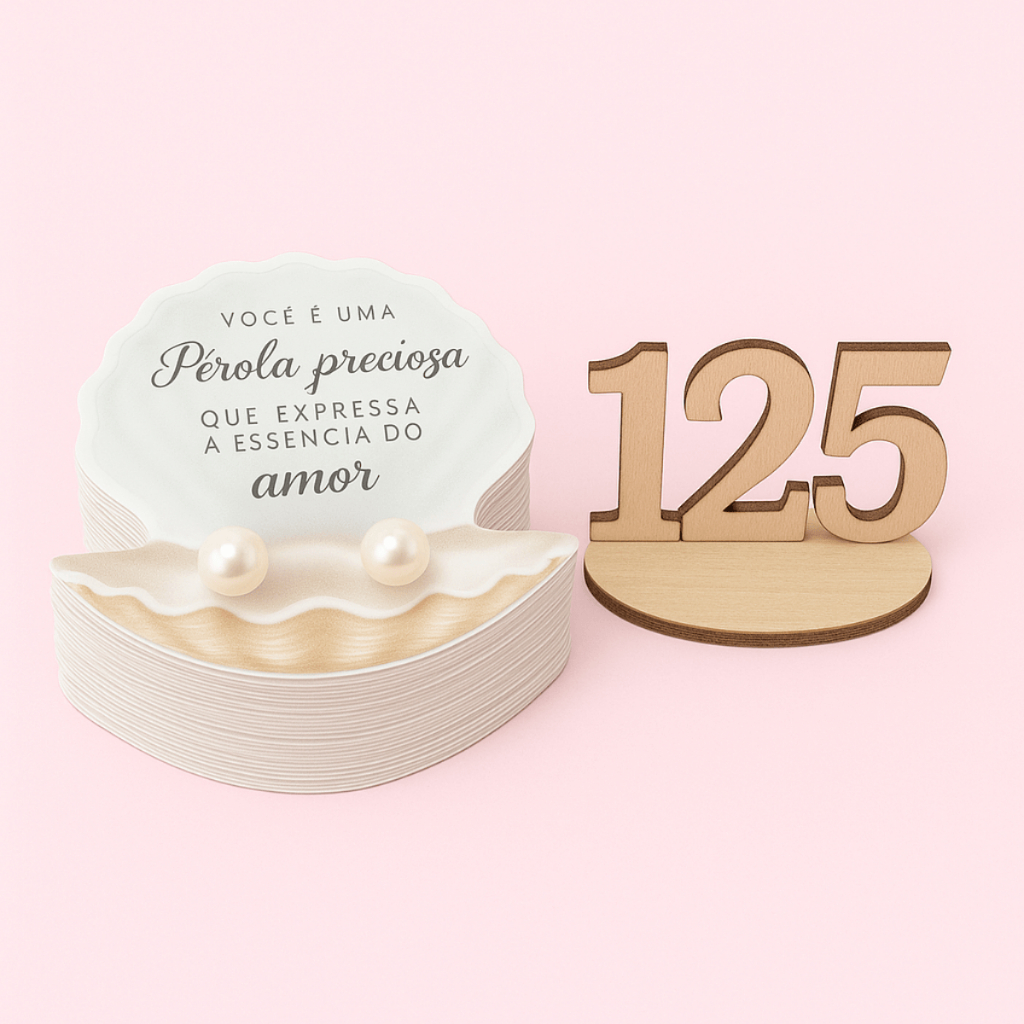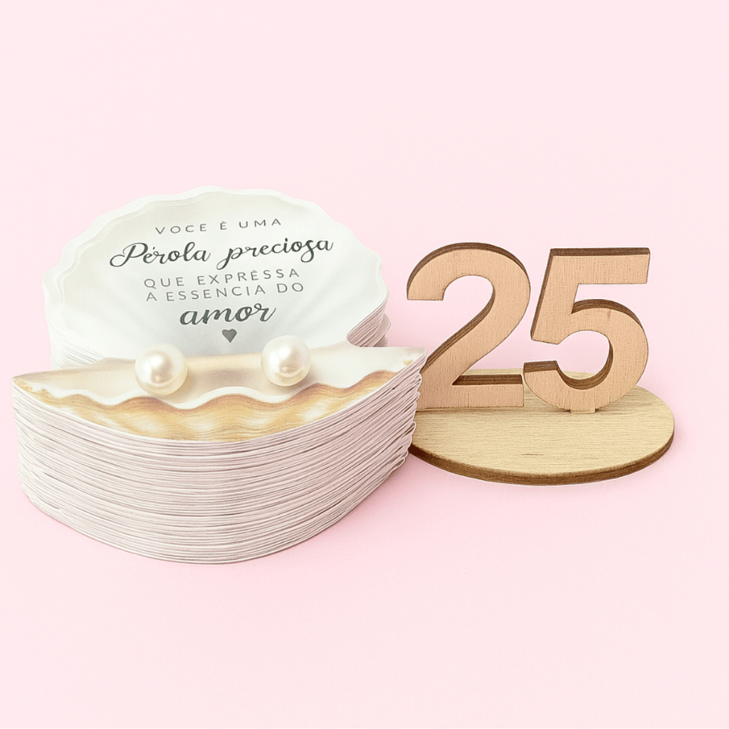 Mini Cartão Tag Concha + Brincos de Perola Pronta Entrega 5x5cm Mimo Cliente