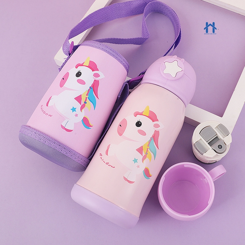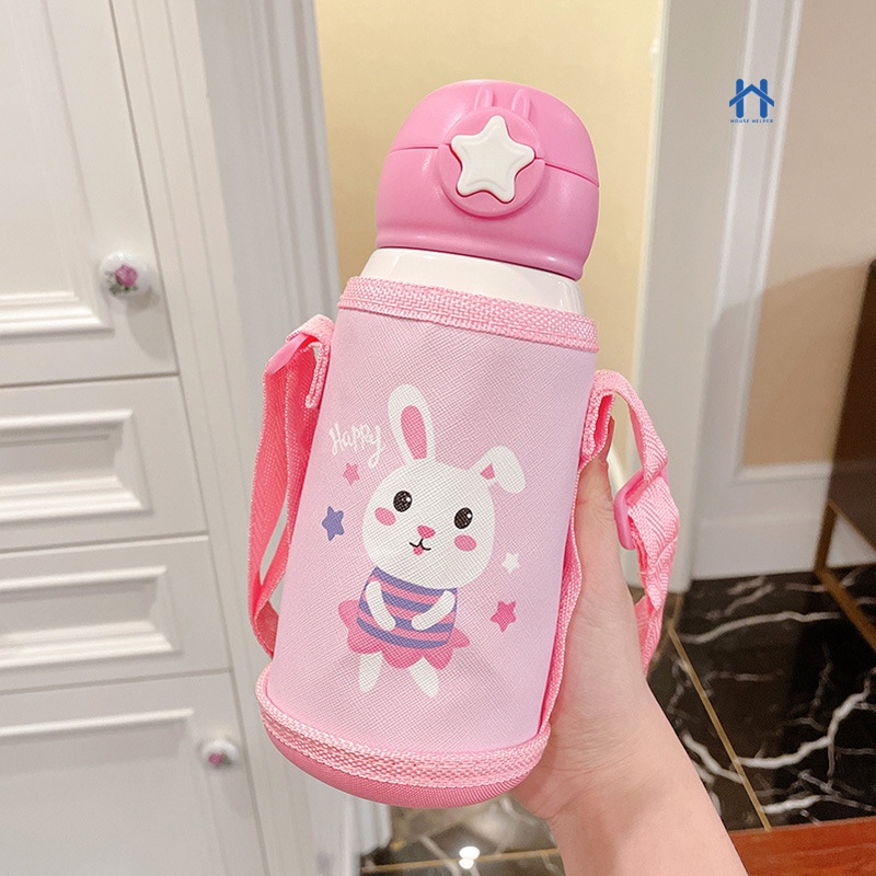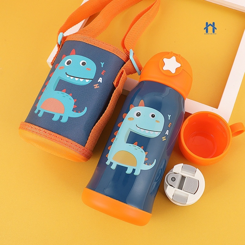 Garrafa Térmica Infantil de 500 ml Aço Inox 304 Com Alça Bolsa De Armazenamento, Canudo e Caneca