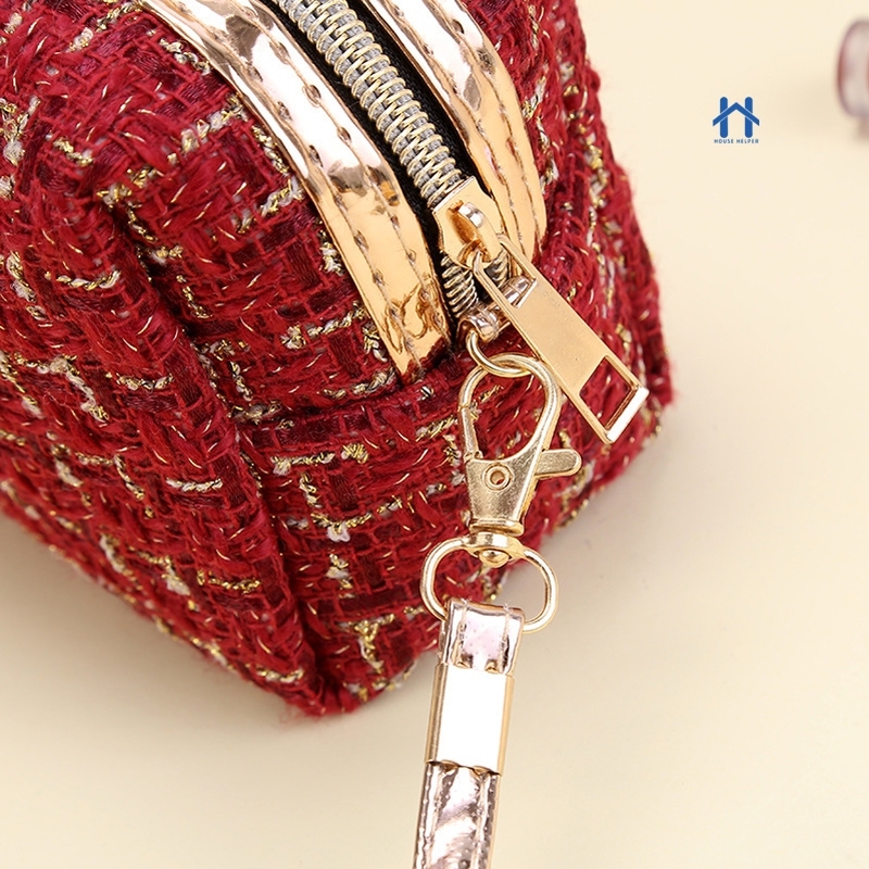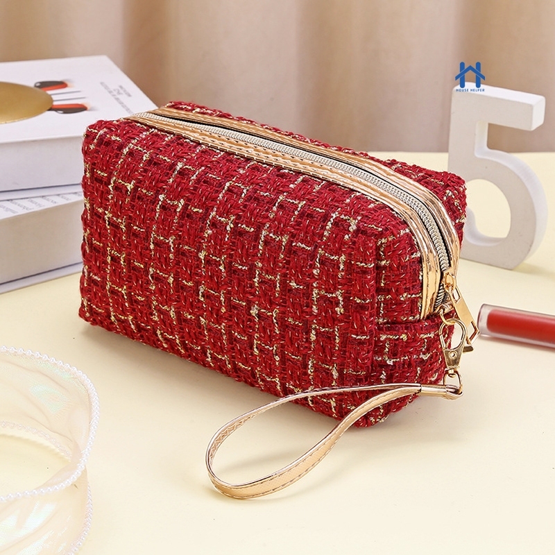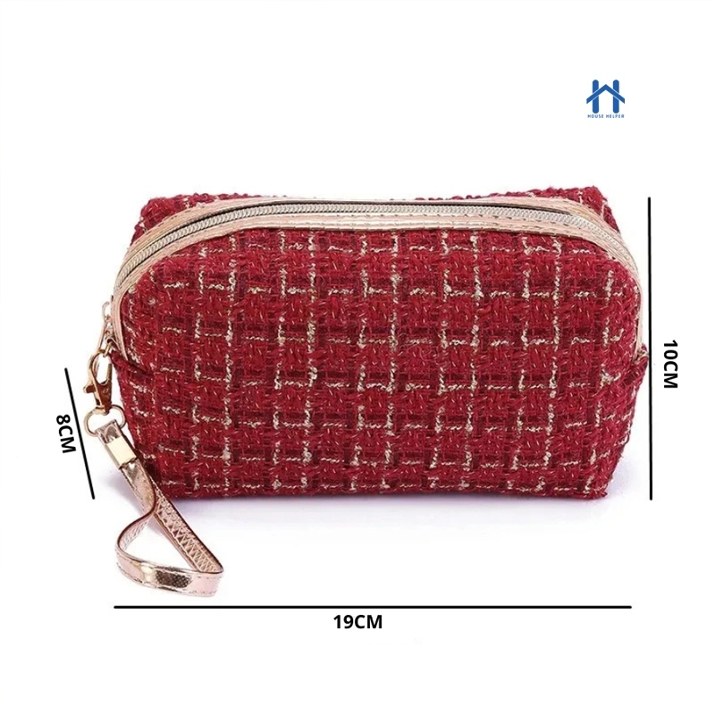 Estojo Necessaire Bolsa de Maquiagem Tweed com Alça – Compacta e Versátil Para Viagem ou Dia a Dia