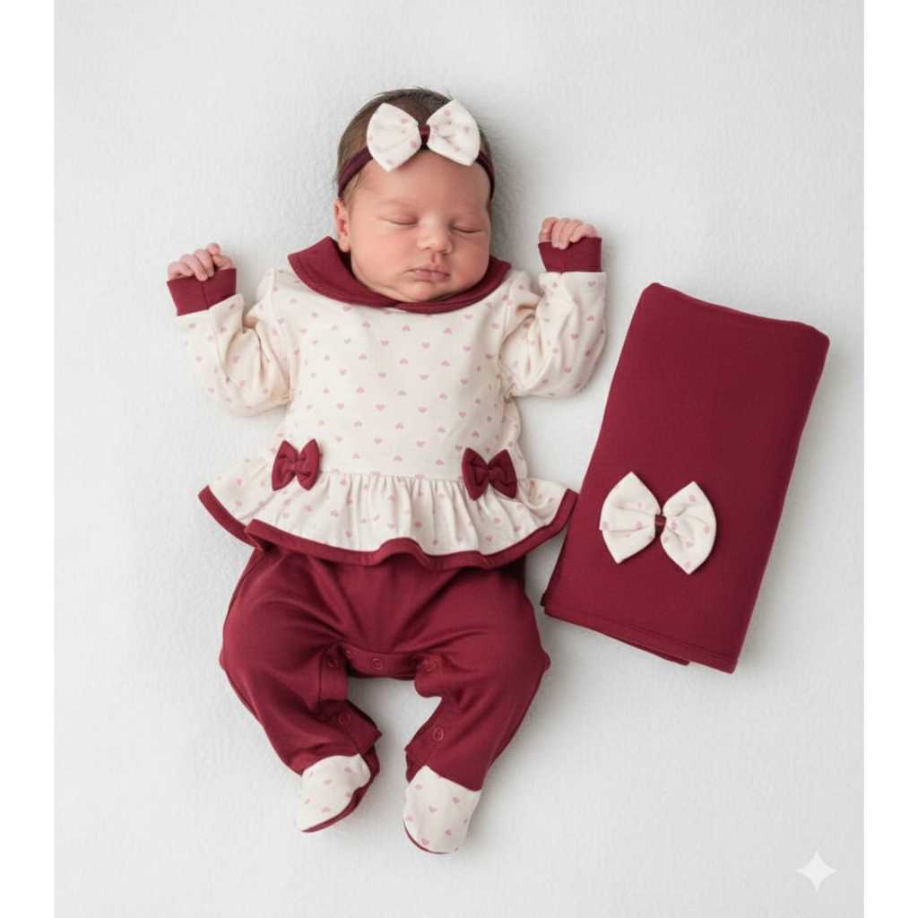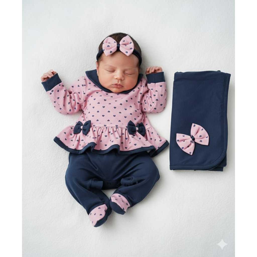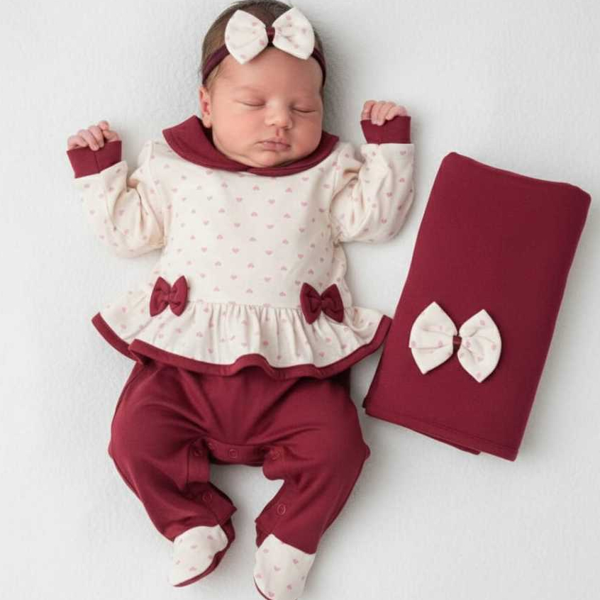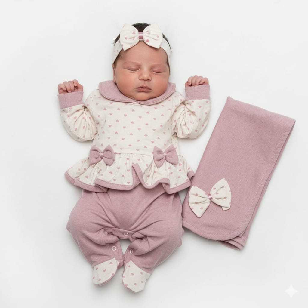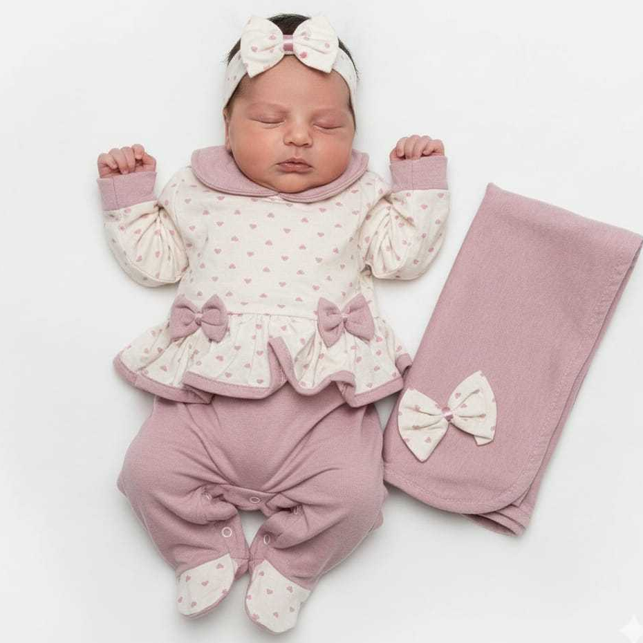 Saída de Maternidade Menina em Malha com lacinhos Soneca Laura - Tam. P