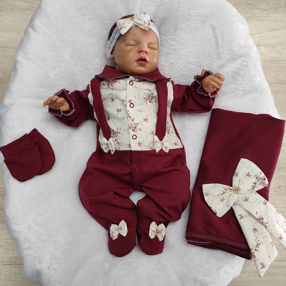Saída De Maternidade Menina Primavera/Verão Manu Pink, Rosê, Rosa, Vermelho e Marsala - Tam P