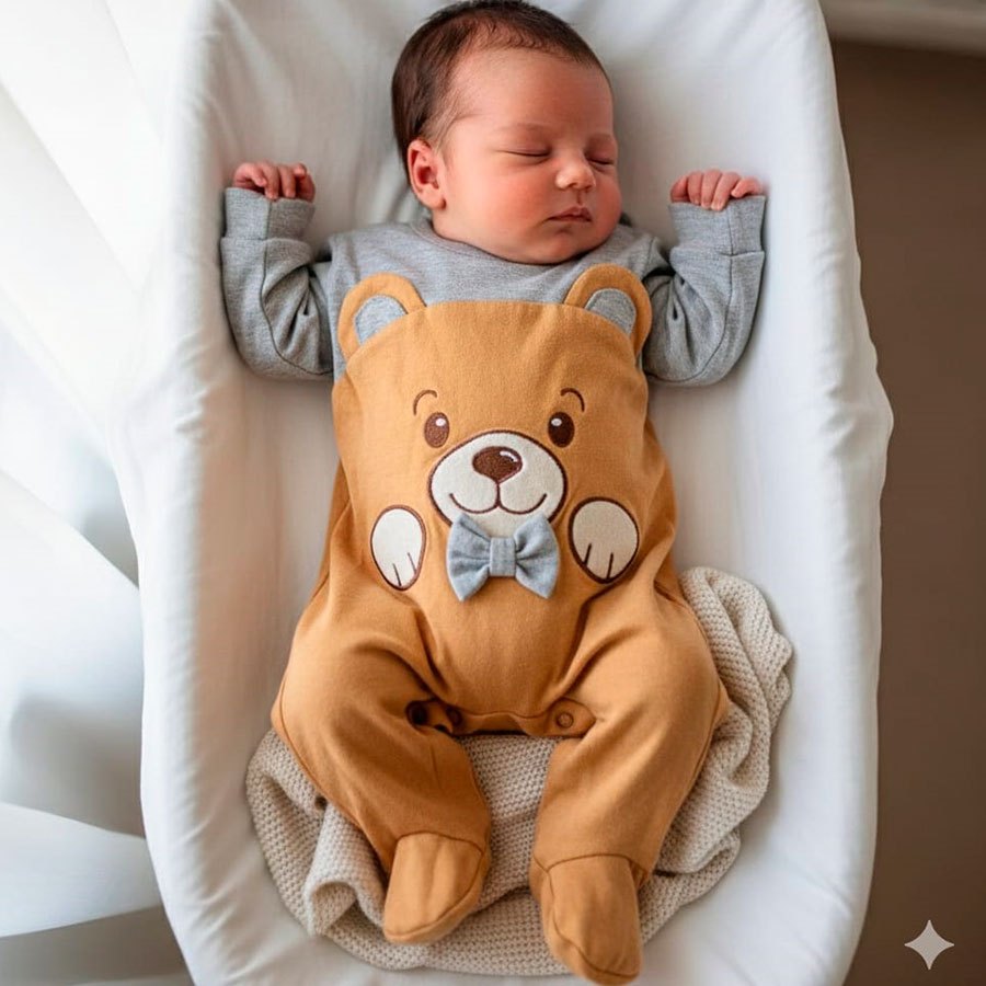 Macacão Manga Longa Bebê Menino Kids Bordado Ursinho Jáder Tam RN, P e M