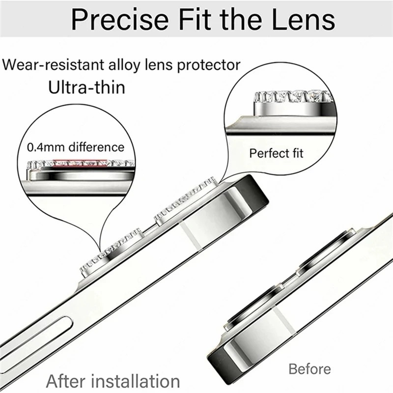 Kit Película Câmera Strass Para iPhone 16/16 PLUS/16 PRO/16 PRO MAX/15/15 PLUS/15 Pro/15 Pro Max Protetor Lente Diamante