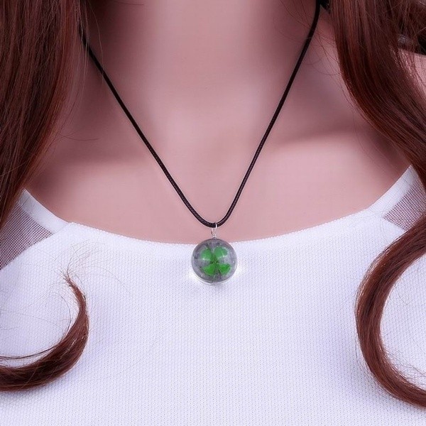 Colar Trevo da Sorte Trevo de Folhas Amuleto da Sorte em Resina Cordão Preto Ajustável moda unissex gargantilha adulto infantil cordão com regulagem