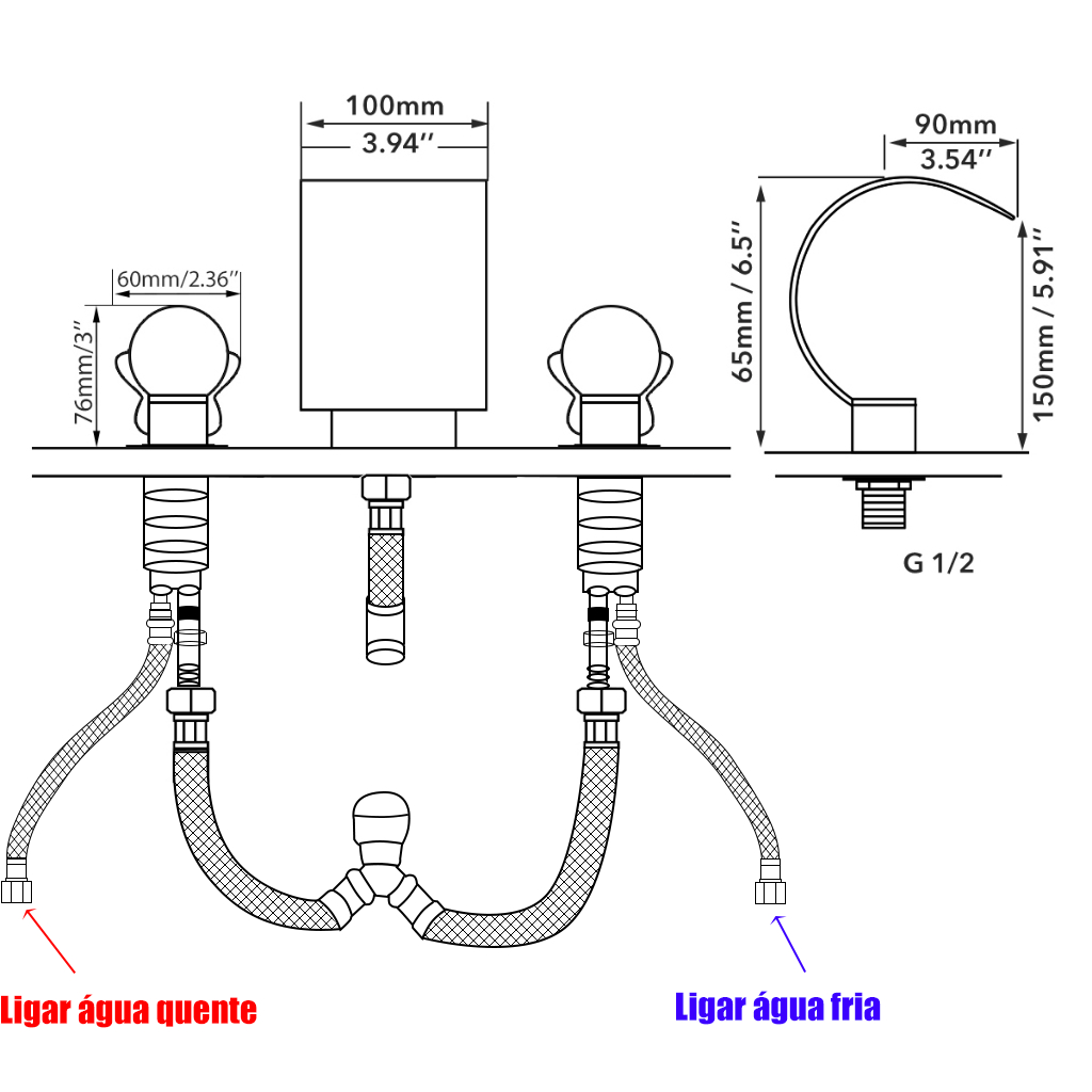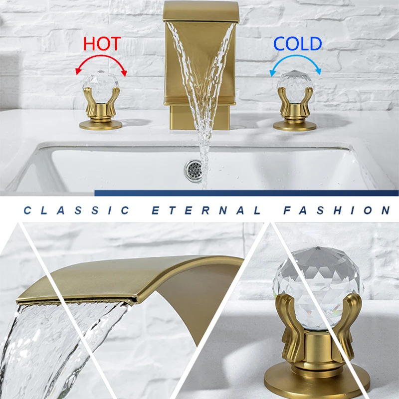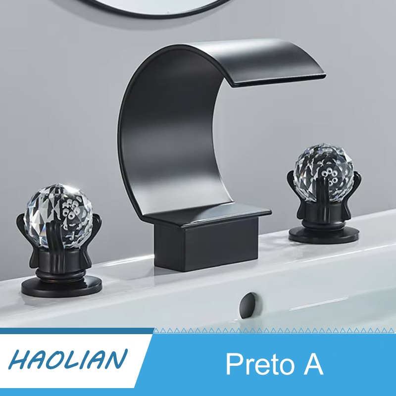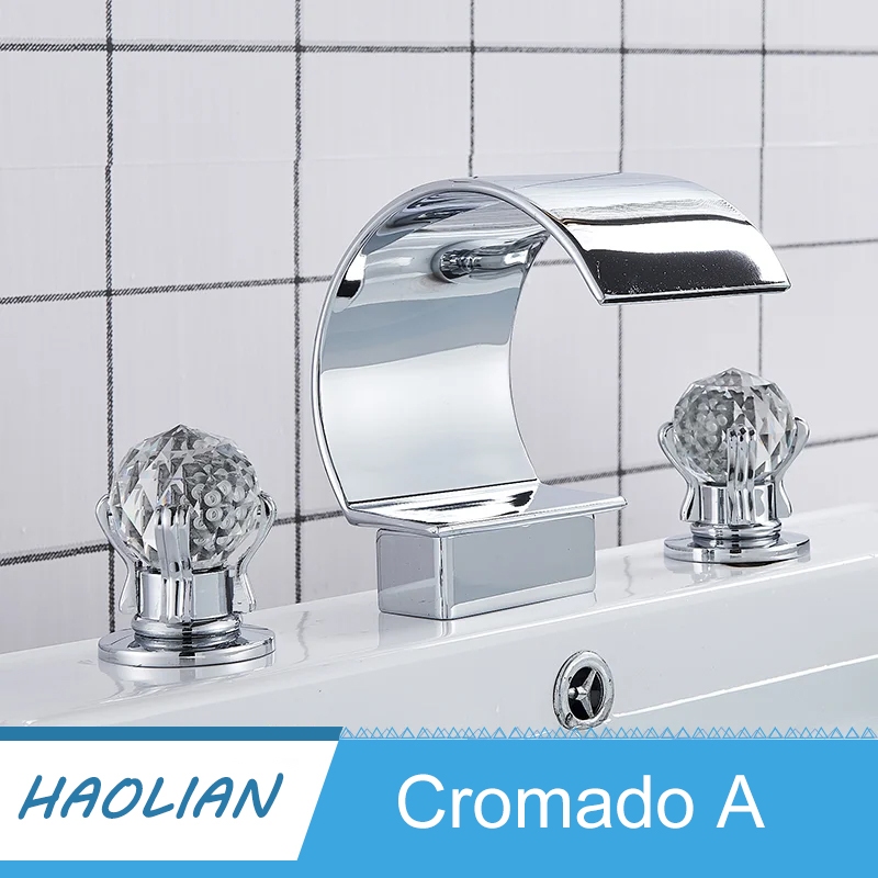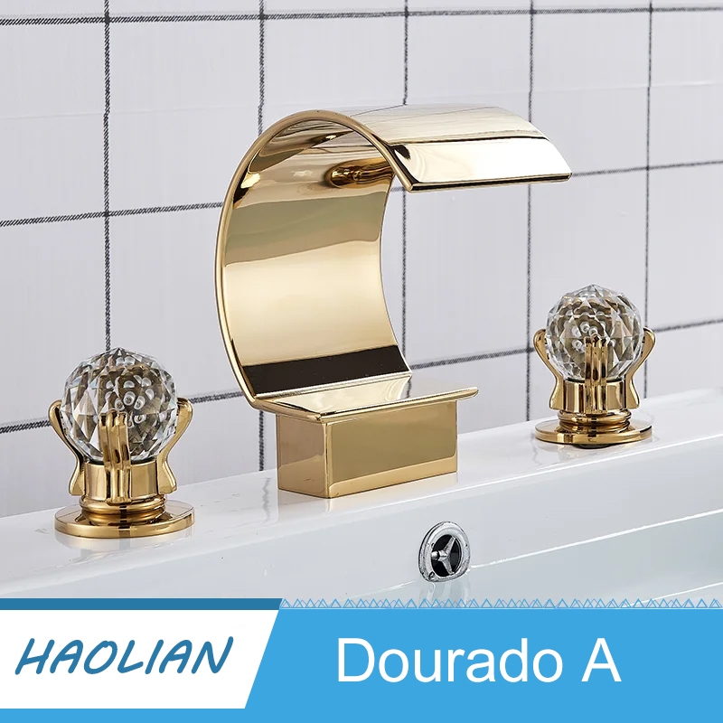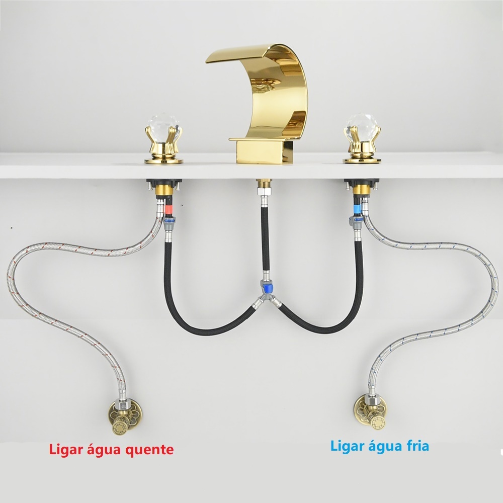 Torneira Misturador Lavatório Banheiro Dourado/Cromado Conjunto Metal Com Duplo Alças