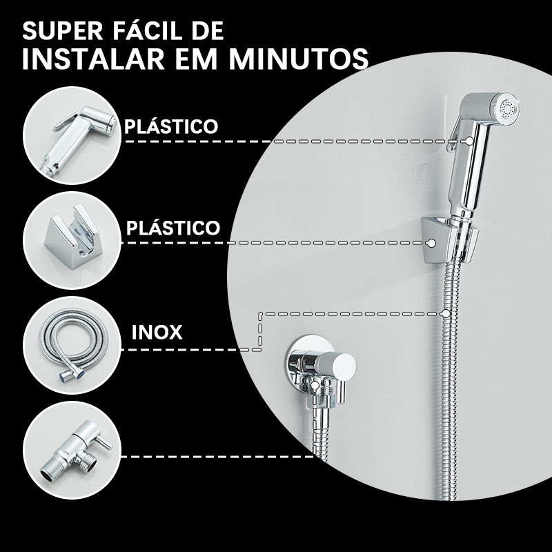 Ducha Higiênica Luxo Metal Cromado Acionamento 1/4 De Volta 120cm Tubo
