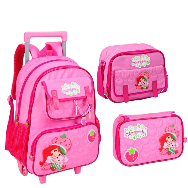 Kit Moranguinho Mochila Carrinho + Lancheira e Estojo Clio Style Original MO26287k