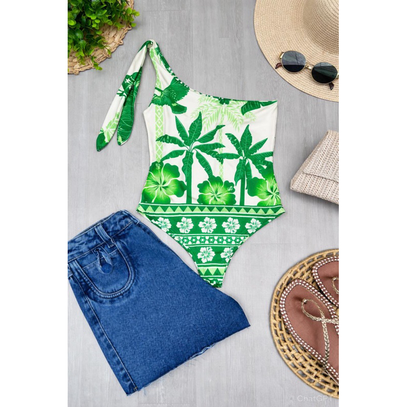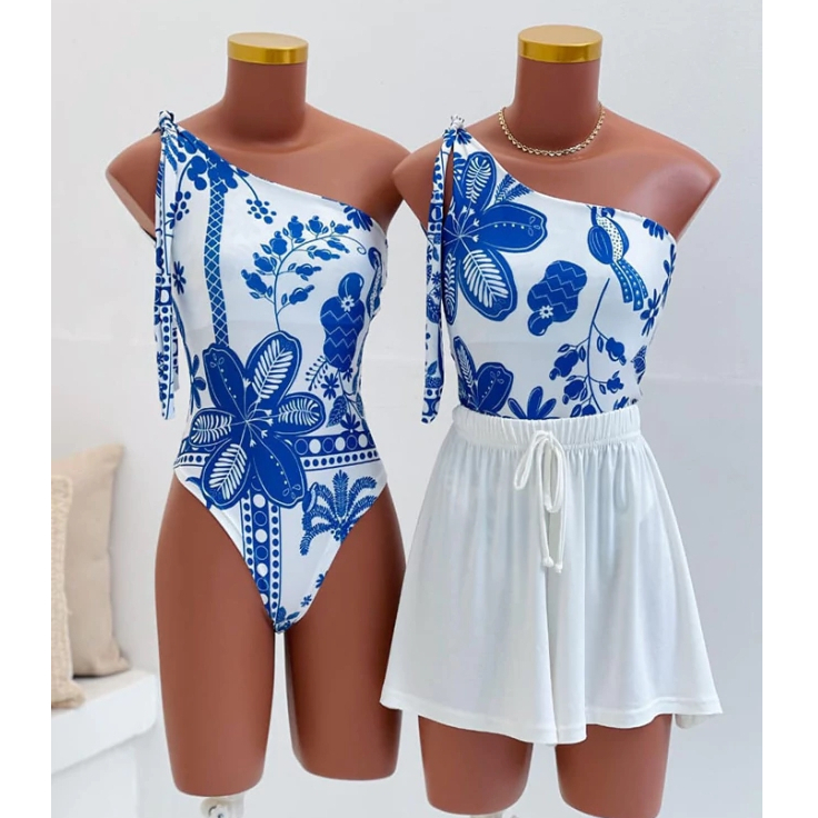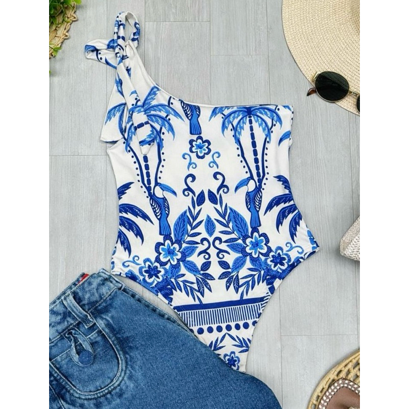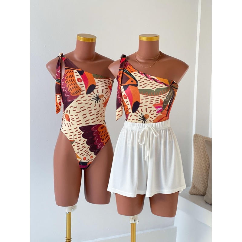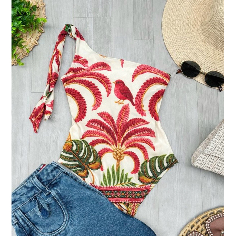 Body estampado um ombro só moda praia blogueira ombro único Bory Bori